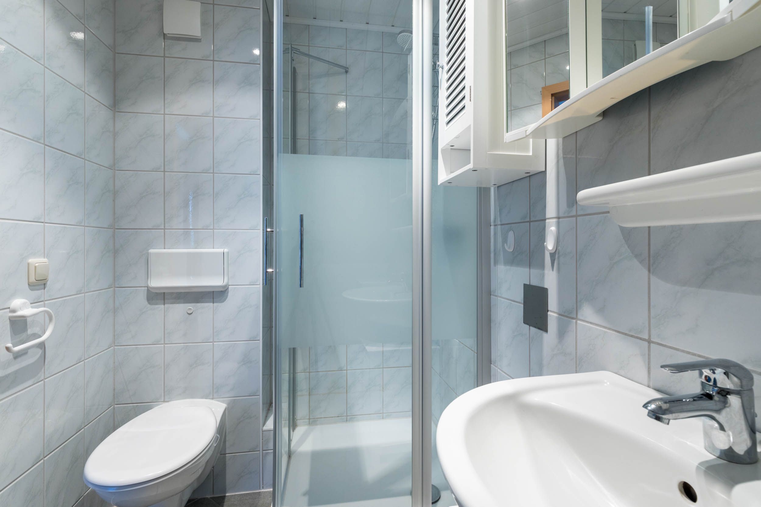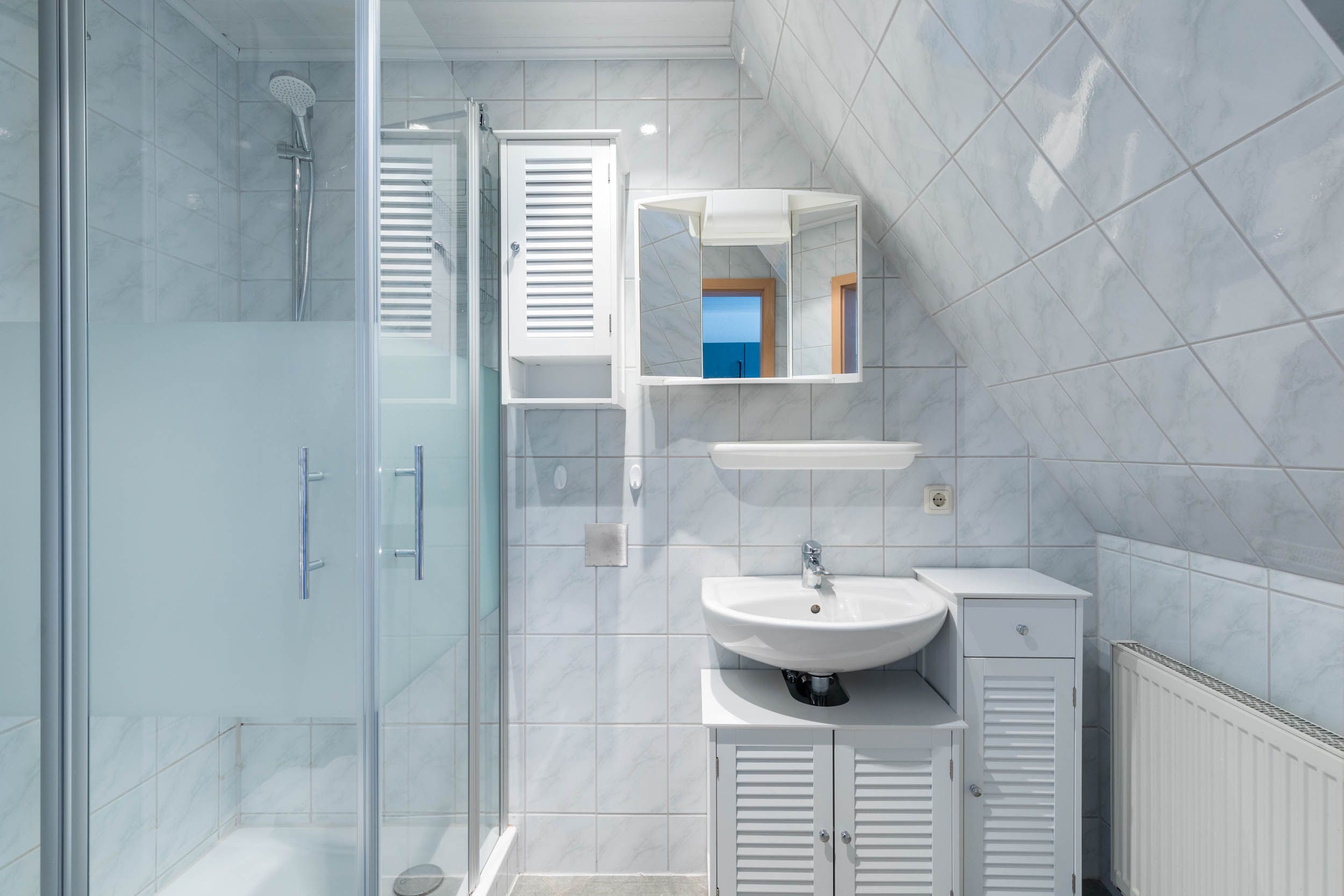 Ein modernes Bad mit Dusche, Waschbecken und WC komplettiert das komfortable Quartier im Ostseebad Boltenhagen im Ortsteil Tarnewitz.
