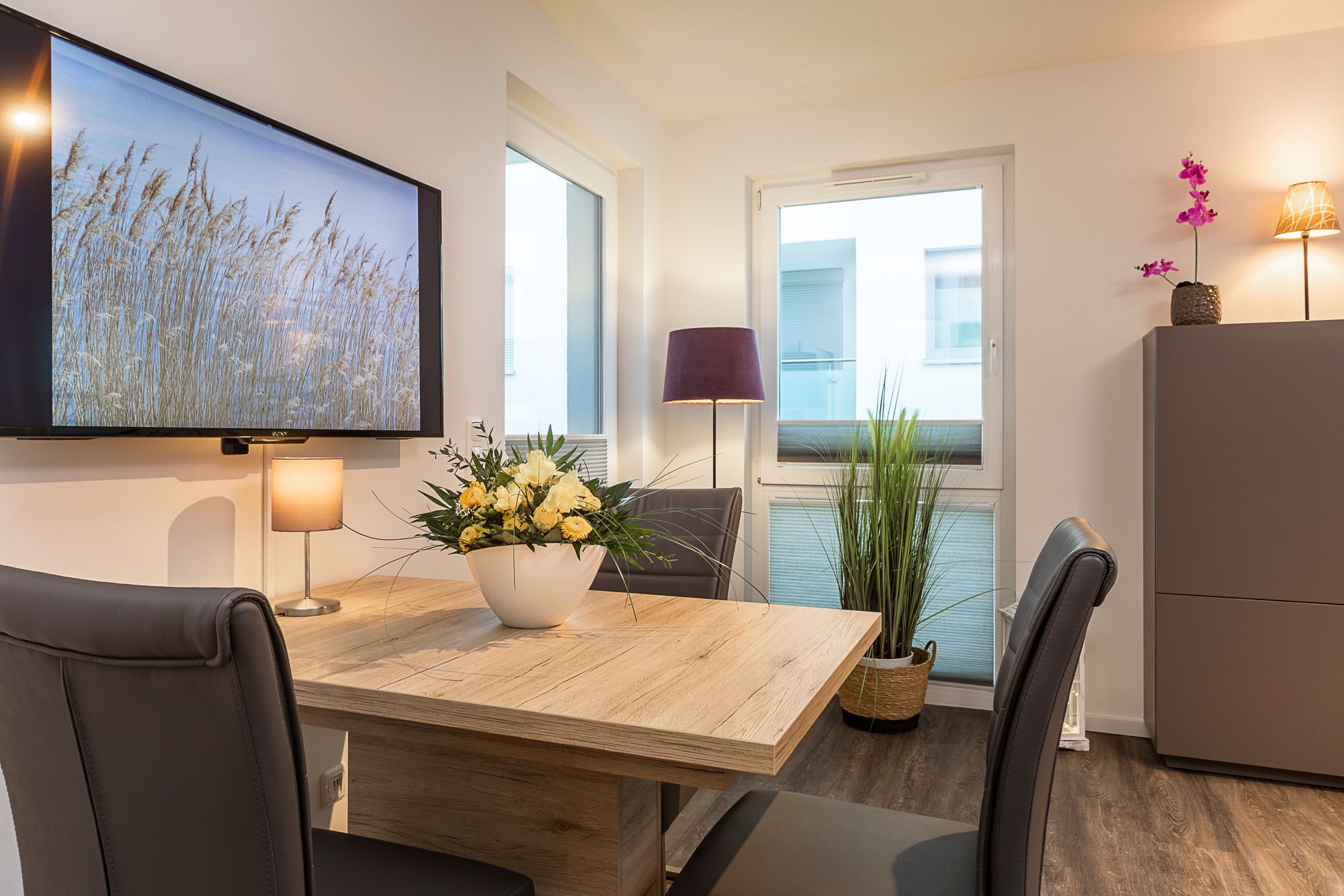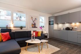 Sehr ansprechende 2-Zimmer-Ferienwohnung, ca. 49 m², für bis zu 3 Personen, mit kleiner Terrasse, Duschbad, WLAN, Tiefgaragenstellplatz