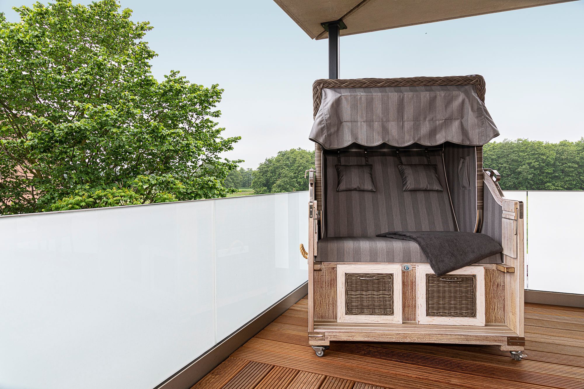 Diese 2-Zimmerwohnung besticht durch zeitlos elegante Einrichtung (Design-Pandomo-Fußboden). Das helle Wohnzimmer mit Flachbild-TV, einem Sofa, das mit wenigen Handgriffen zu einem weiteren Schlafplatz umgebaut werden kann (Liegefläche1,60 x 2,00m) sowie einer komplett ausgestatteten Küchenzeile eignet sich für einen komfortablen Urlaub. Großzügiges Schlafzimmer mit einem Boxspringbett (1,80 x 2,00m), durchgehende Matratze (der Firma Jensen), Kleiderschrank, Kommode und TV. Das Bad ist mit einer bodengleichen Dusche / Regendusche sowie einem Handtuchheizkörper ausgestattet. Großer halb umlaufender Balkon nach Südwesten, mit seitlichem Ostseeblick sowie einem weiten Blick ins Grüne hier genießen Sie die Mittags- und Nachmittagssonne, bis zum Abend. Gartenmöbel sowie ein Strandkorb werden Sie hier zum Lesen oder einfach nur zum Träumen einladen. Zur komfortablen und sicheren Unterbringung Ihres PKWs steht Ihnen ein Außenstellplatz direkt am Haus zur Verfügung, hier steht Ihnen auch eine E-Ladestation für Ihr E-Auto kostenpflichtig zur Verfügung. Ebenso im Haus ein Gemeinschaftsraum mit Waschmaschine und Trockner, die über einen Münzzähler bedient werden. Auch Fahrräder können sicher im abschließbaren Fahrradraum untergestellt werden.