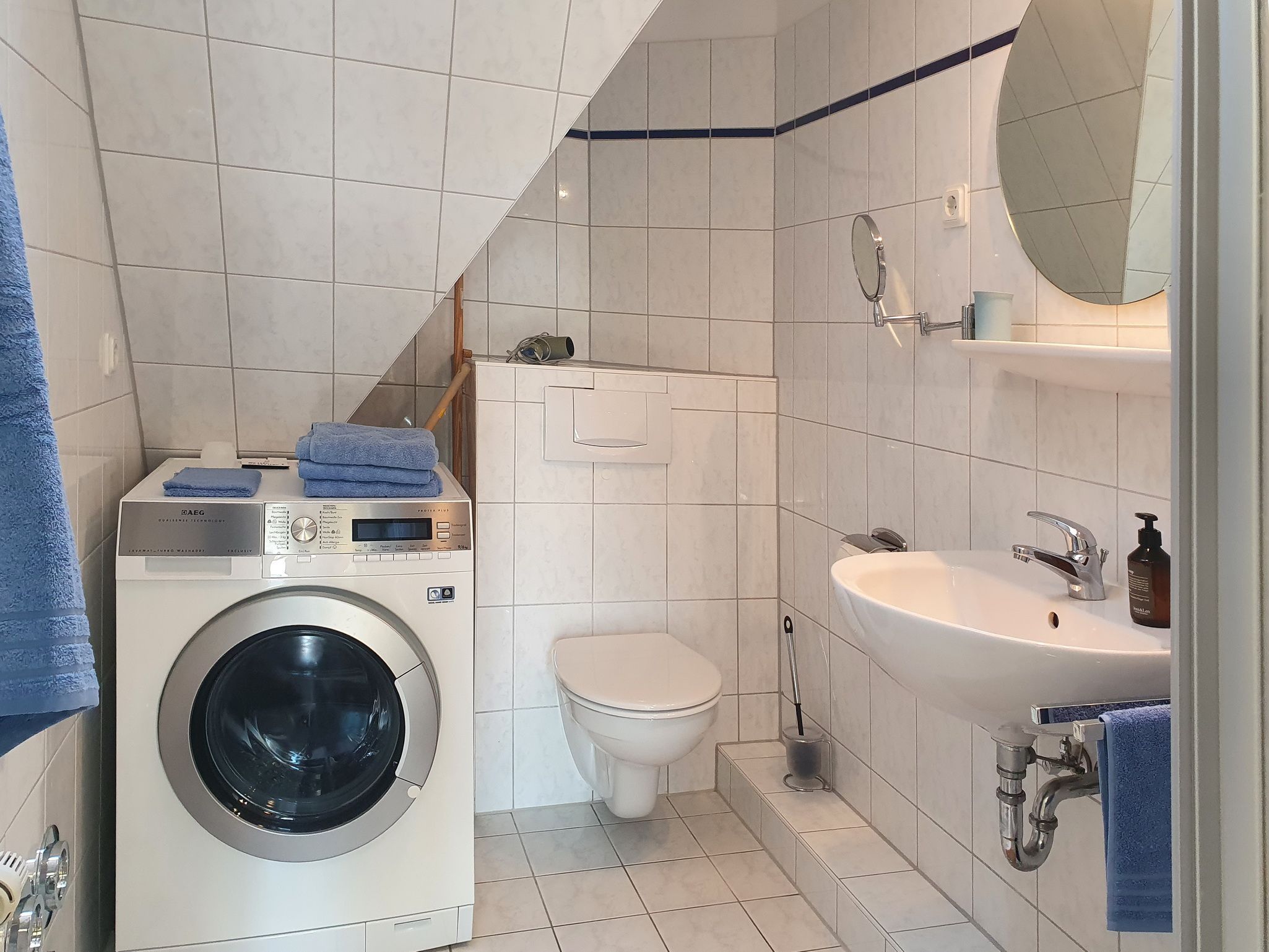 Die Küche ist mit 2 Kochplatten, einer Mikrowelle und einem Geschirrspüler ausgestattet. Im Badezimmer gibt es neben einer Dusche und einer Toilette auch eine Waschmaschine. Das Fenster im Bad lässt sich elektrisch öffnen und schließen. Alle Räume befinden sich auf einer Etage, nämlich im 2. Obergeschoss.