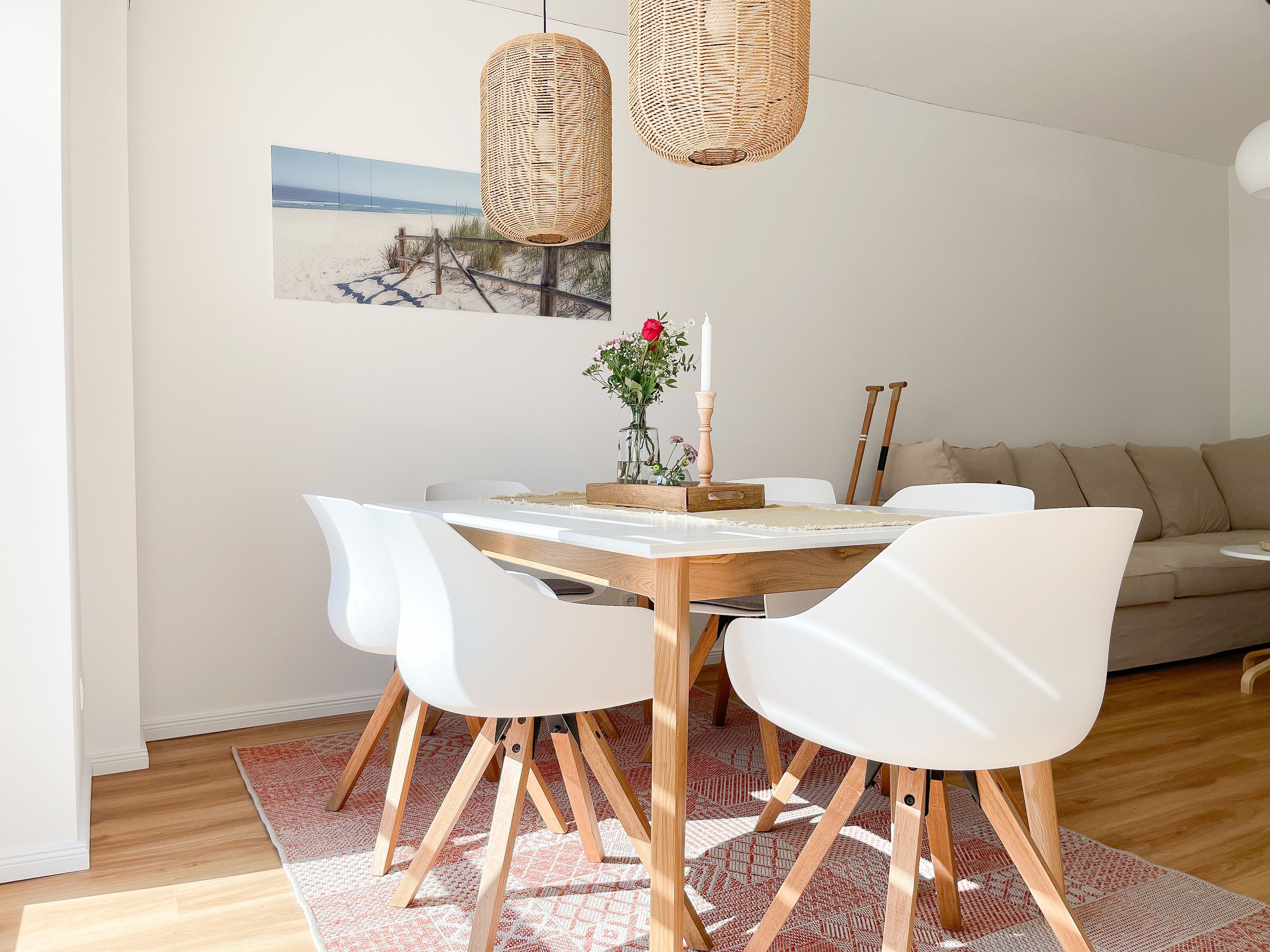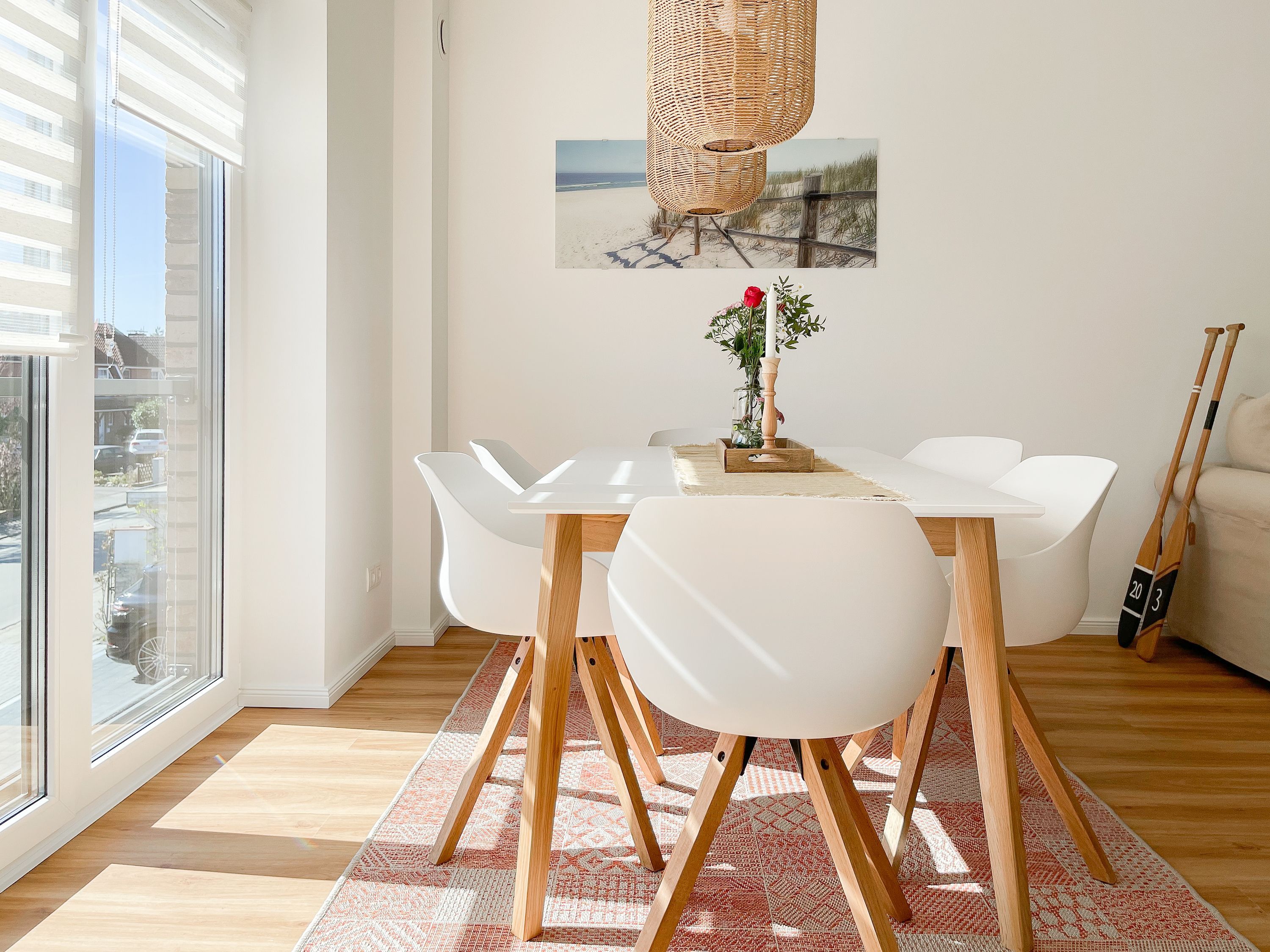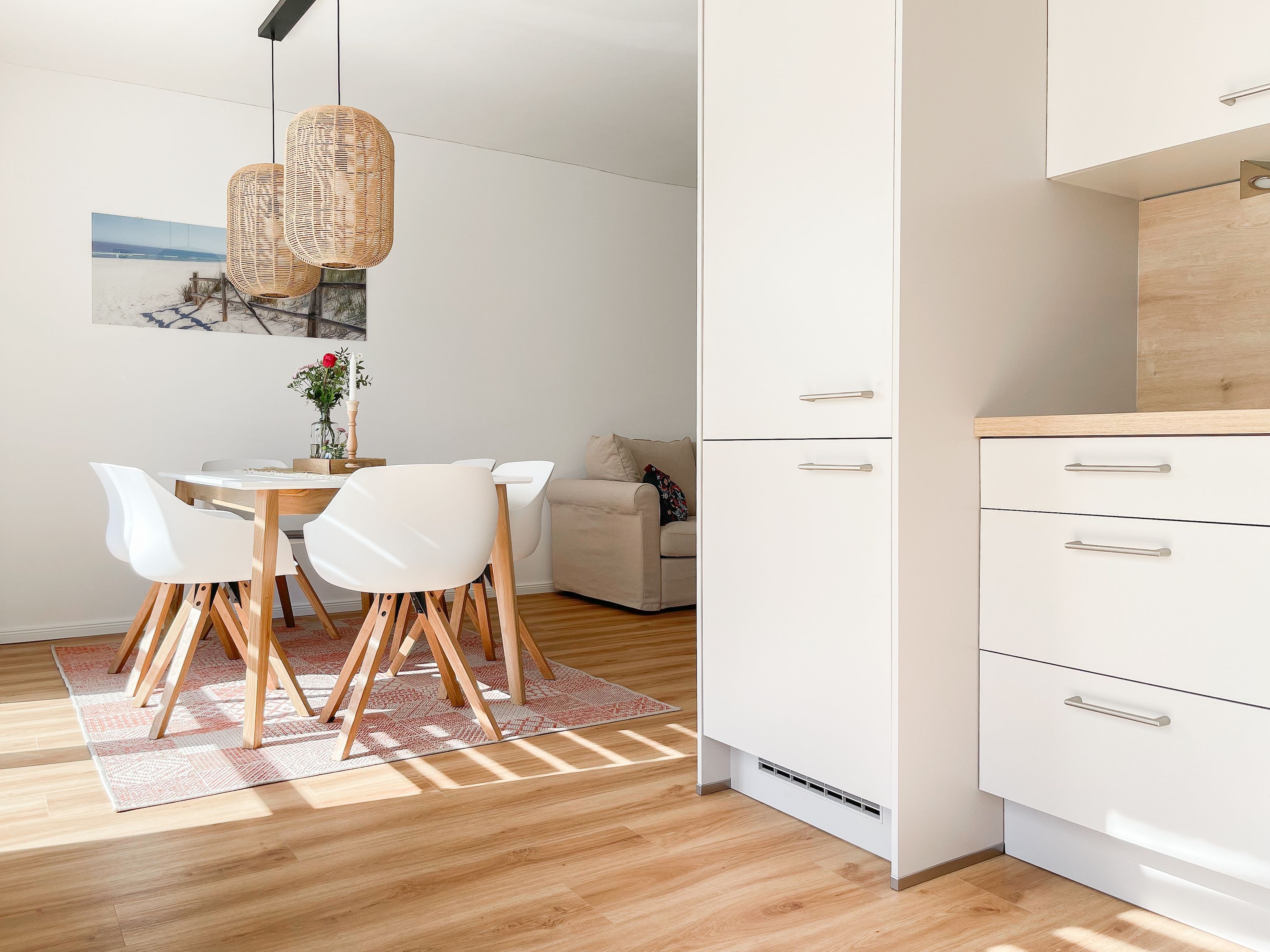 Es erwartet Sie eine wunderschöne Ferienwohnung, die Gemütlichkeit und Wohlbefinden vermittelt. Warme Farben, viel Licht und ein durchdachtes Raumkonzept schaffen eine ganz besondere Atmosphäre und eine Lüftungsanlage sorgt durch permanenten Frischluft Austausch für eine gute Luftqualität in allen Räumen. Sämtliche Fenster sind mit elektrischen Außenjalousien versehen und die Fußbodenheizung sorgt für angenehme Wärme. Der Wohnbereich ist mit einem gemütlichen Ecksofa mit Schlaffunktion und TV ausgestattet. Der anschließende Essbereich bietet ausreichend Platz für 6 Personen und fügt sich harmonisch in die bestens ausgestattete Wohnküche ein. Der vorgelagerte kleine Südbalkon verfügt über 2 Gartensessel, einen kleinen Tisch und 2 weitere Gartenstühle. Es gibt 2 Schlafzimmer, die mit Doppelbetten und Kleiderschränken ausgestattet sind, eines der beiden mit einem zusätzlichen TV. Neben dem modernen Bad mit Waschtisch, WC, Walk In Dusche und Fenster, gibt es ein zusätzliches Gäste WC. WLAN steht selbstverständlich kostenlos zur Verfügung. Die Waschmaschine ist in einem separaten Abstellraum innerhalb der Wohnung untergebracht.