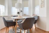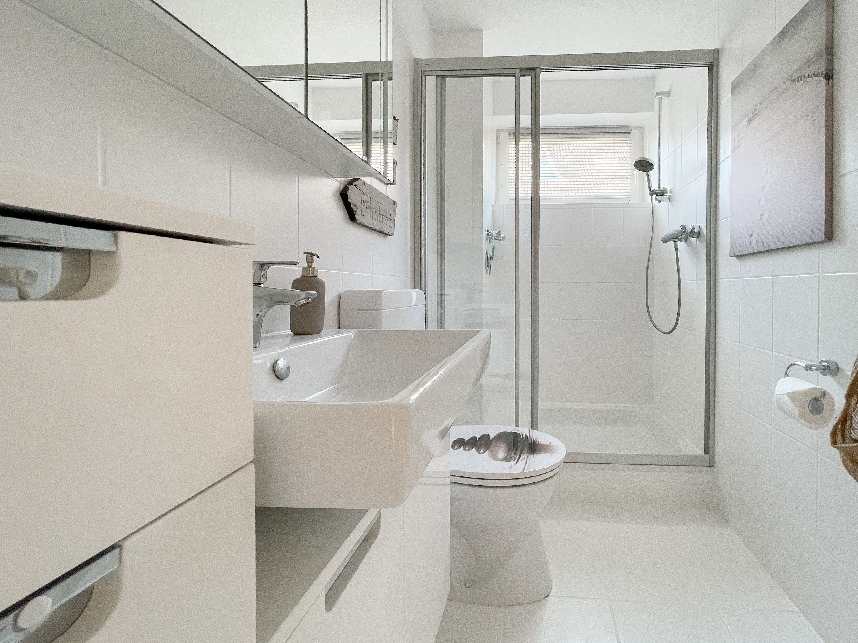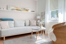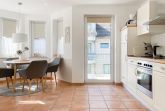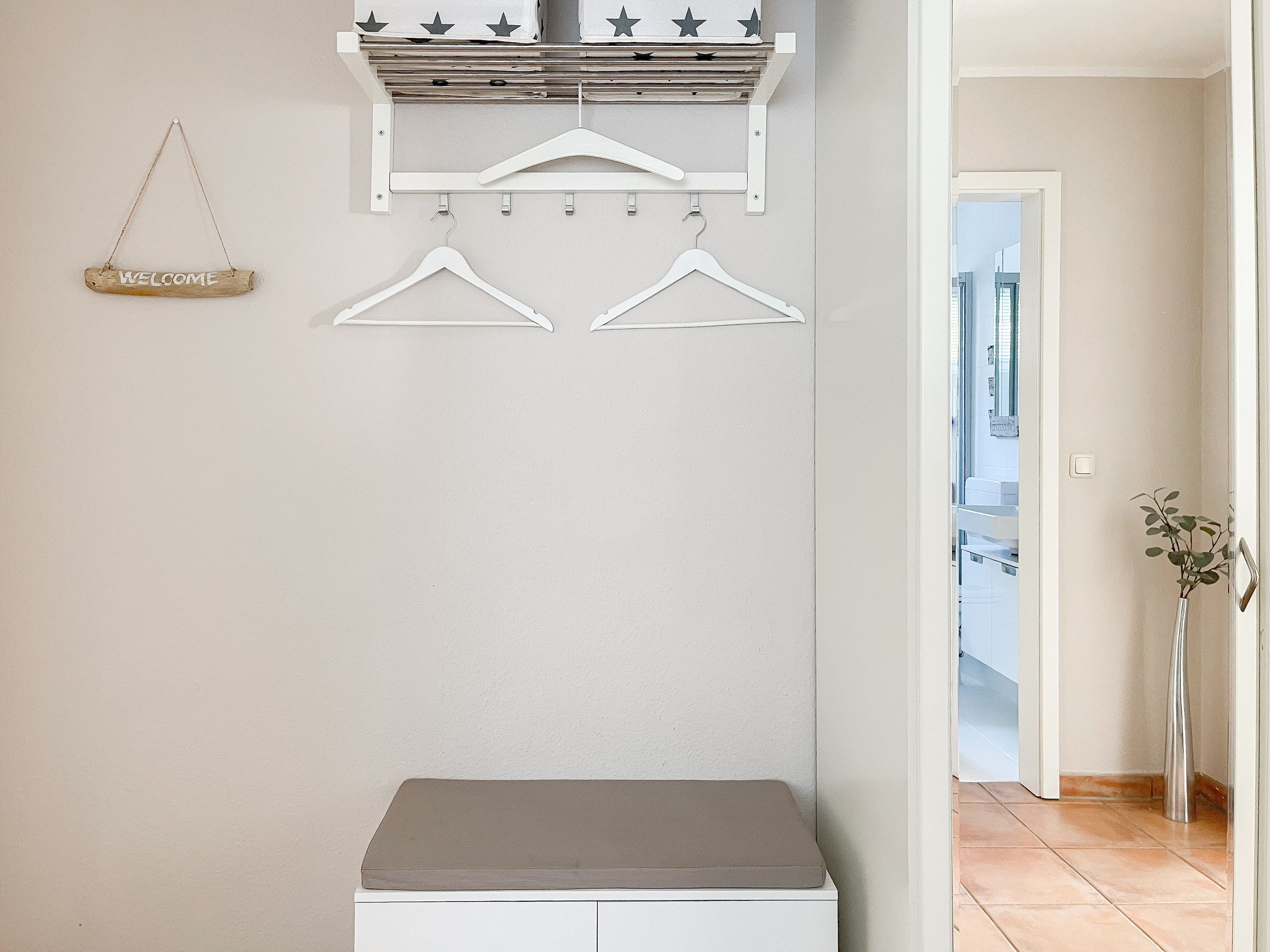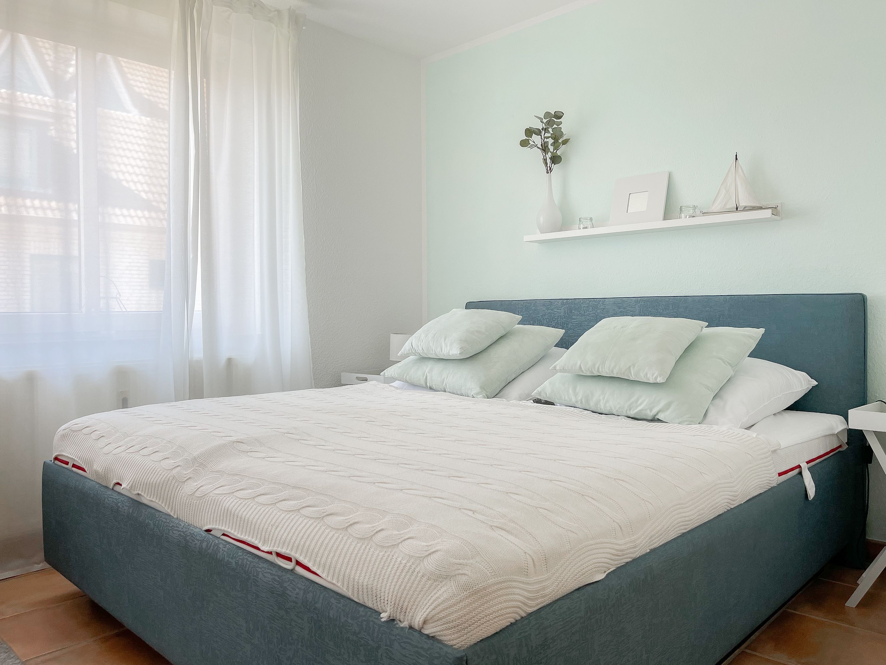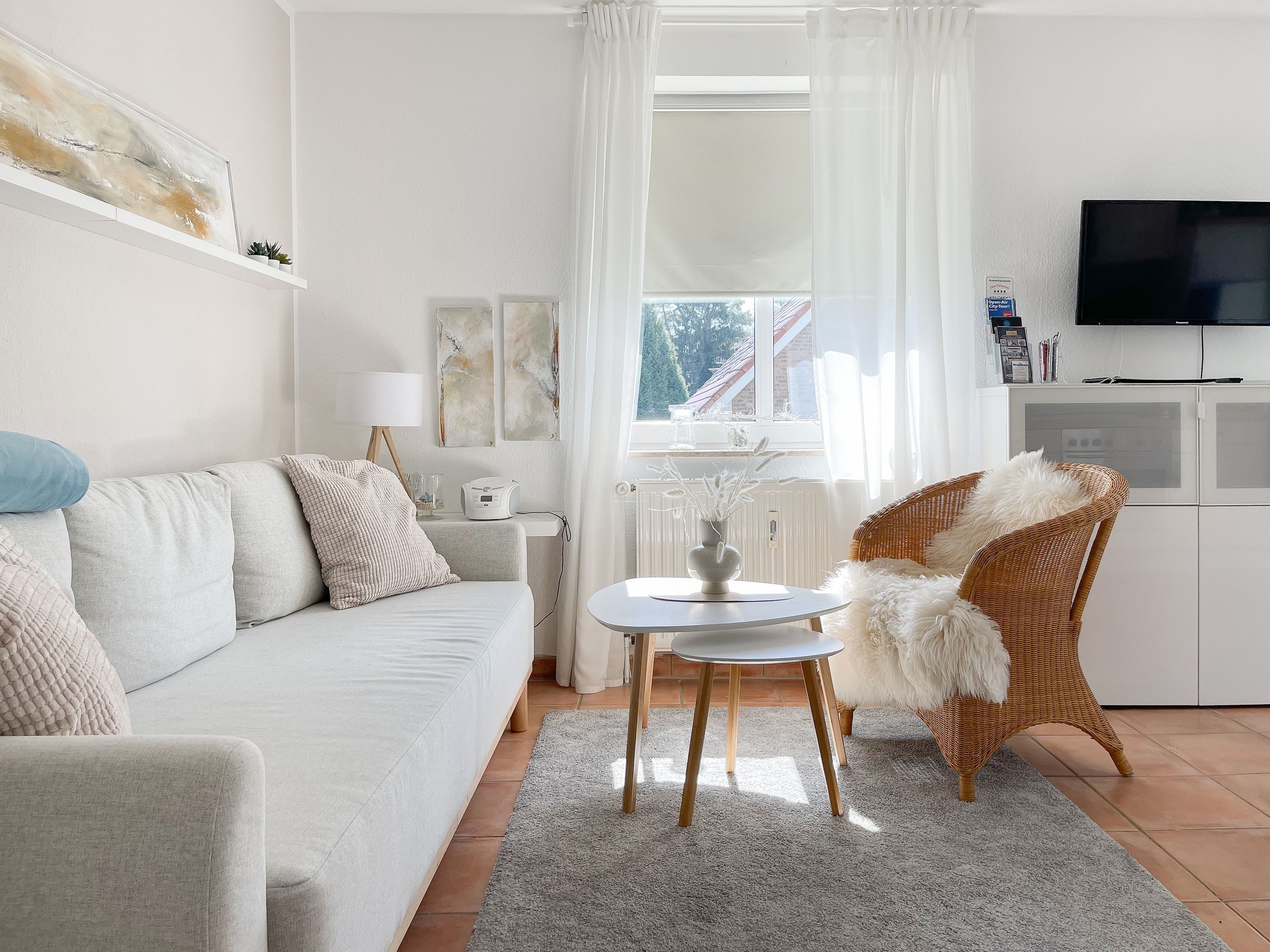 Die sonnige zwei Zimmer Ferienwohnung befindet sich in der 1. Etage und verfügt über kleinen Sonnenbalkon, der mit Gartenmöbeln ausgestattet ist. Der Wohnbereich verfügt über ein Sofa mit Schlaffunktion und TV, eine offene Küche und ein gemütlicher Essbereich, der im Erker untergebracht ist. Das Schlafzimmer ist mit einem Doppelbett (180x200) und einem Kleiderschrank ausgestattet. Das Duschbad verfügt über ein Fenster und ist hell und ansprechend. WLAN steht zur kostenlosen Nutzung zur Verfügung.
