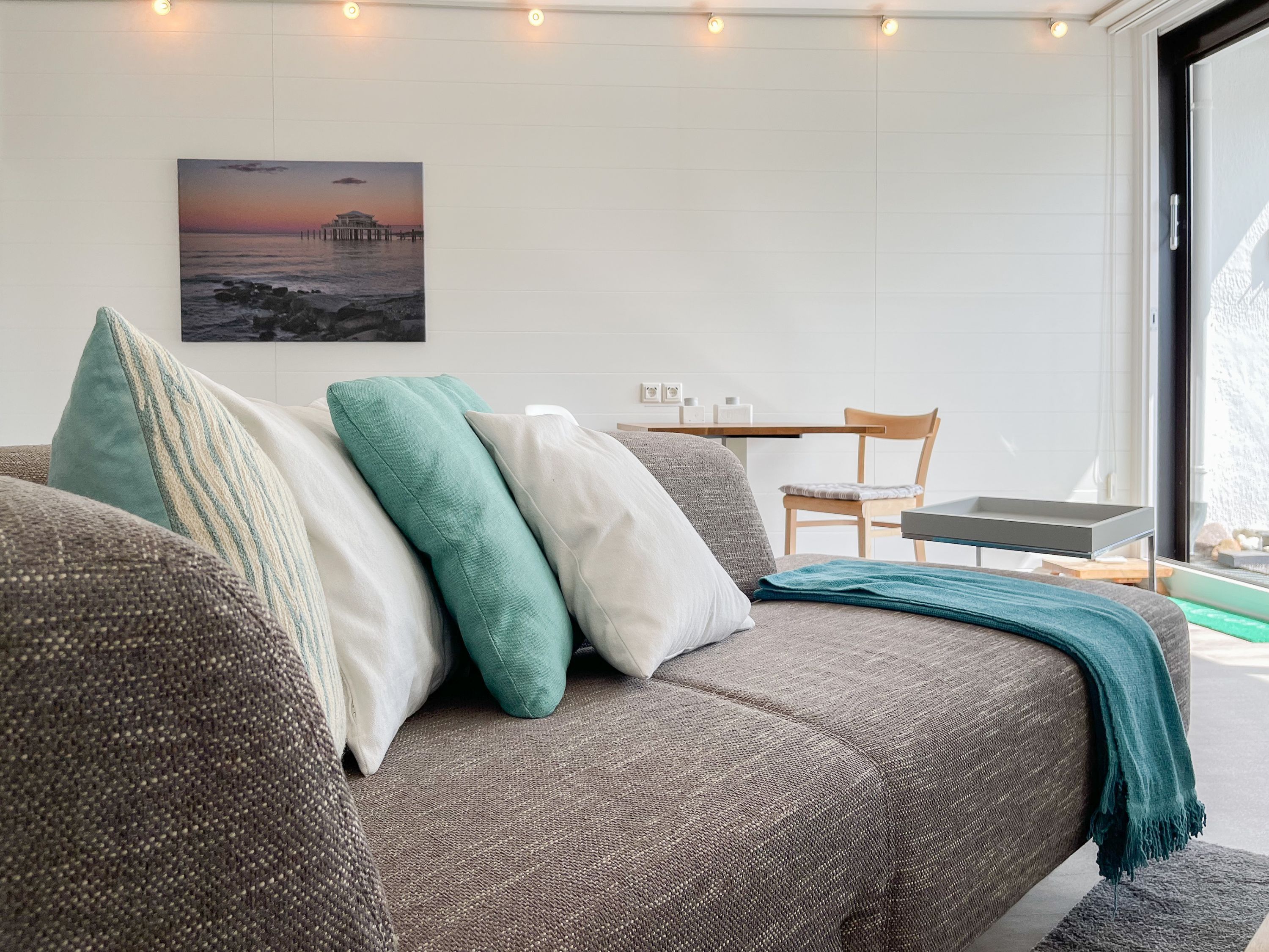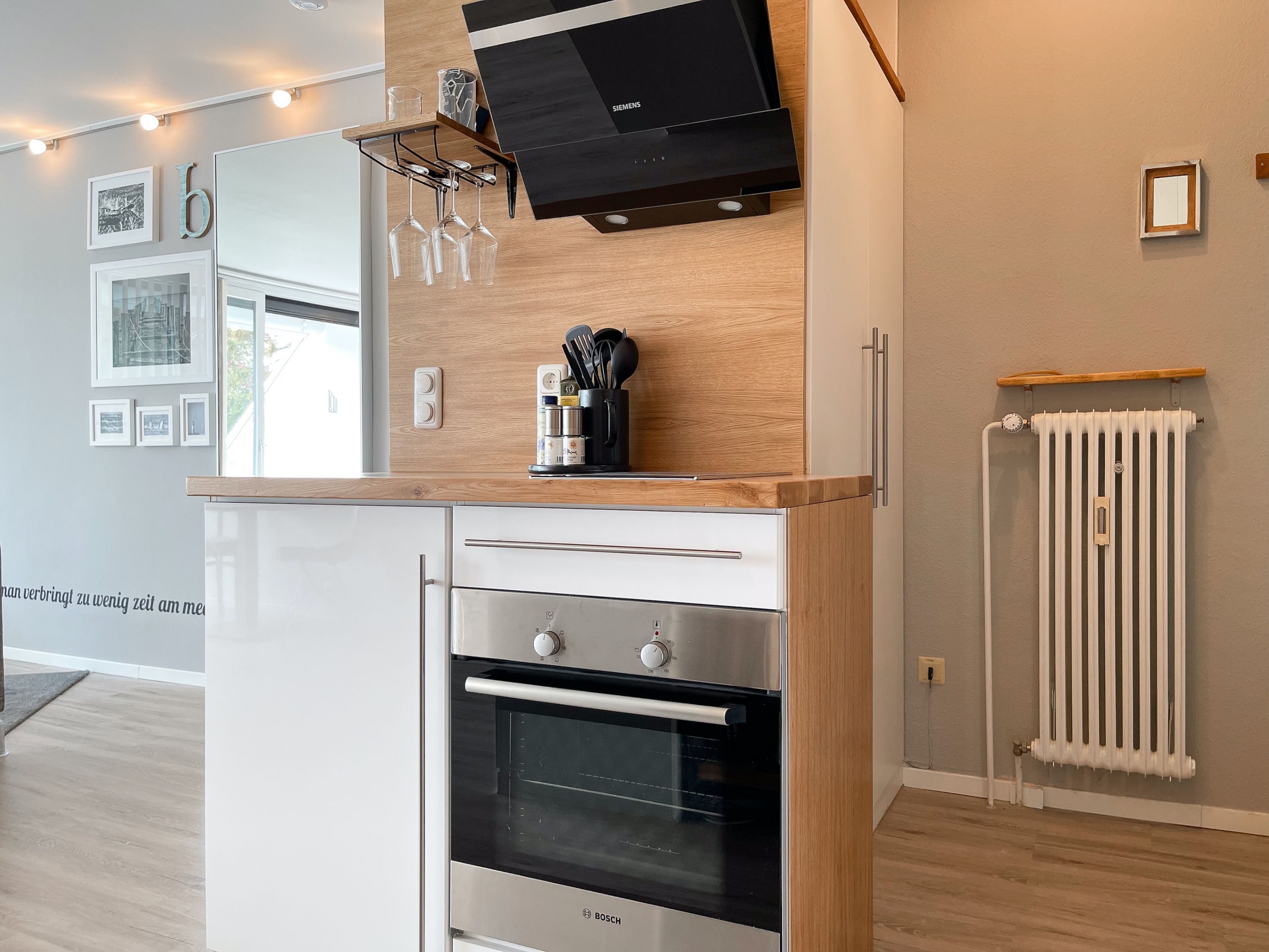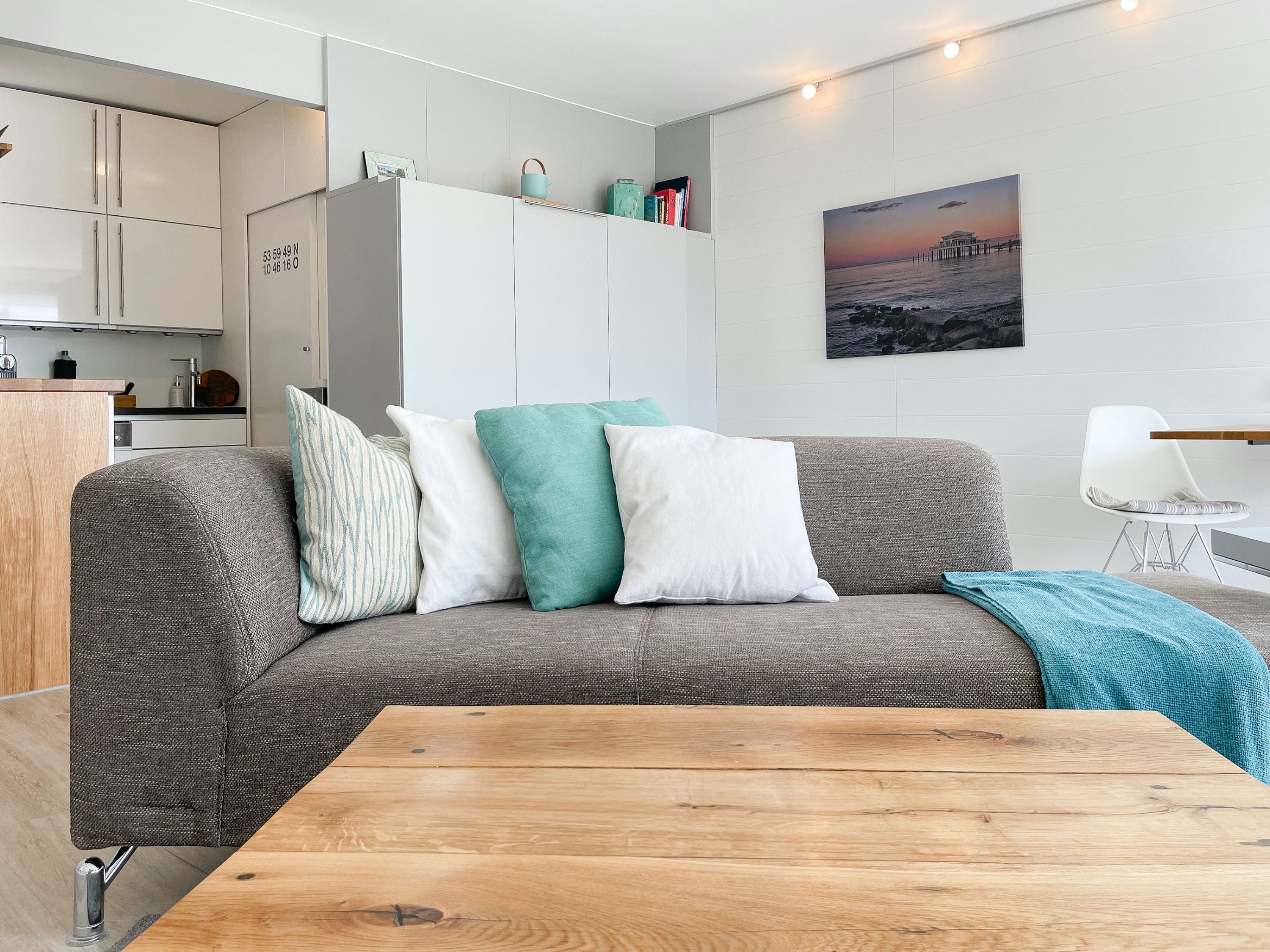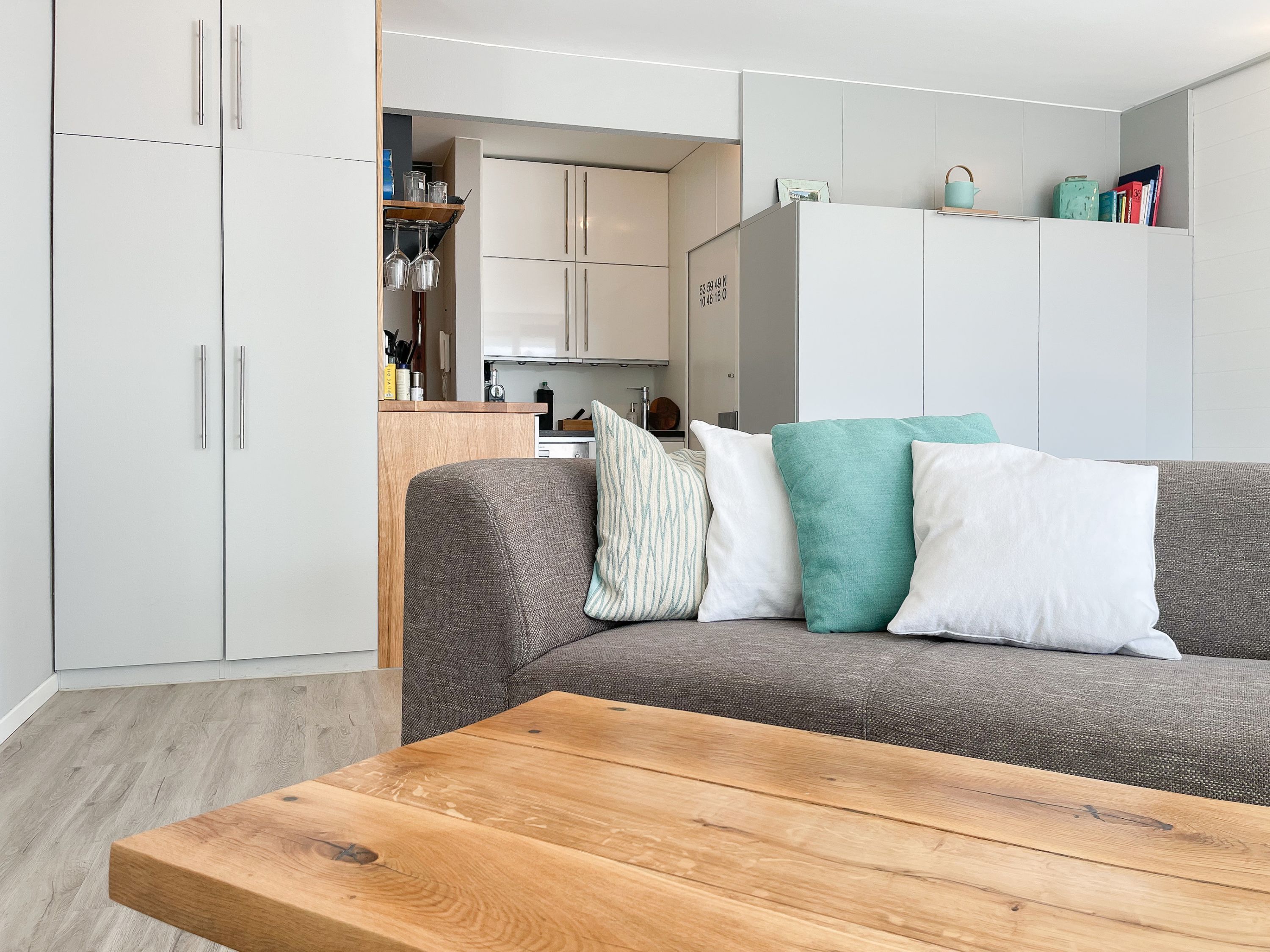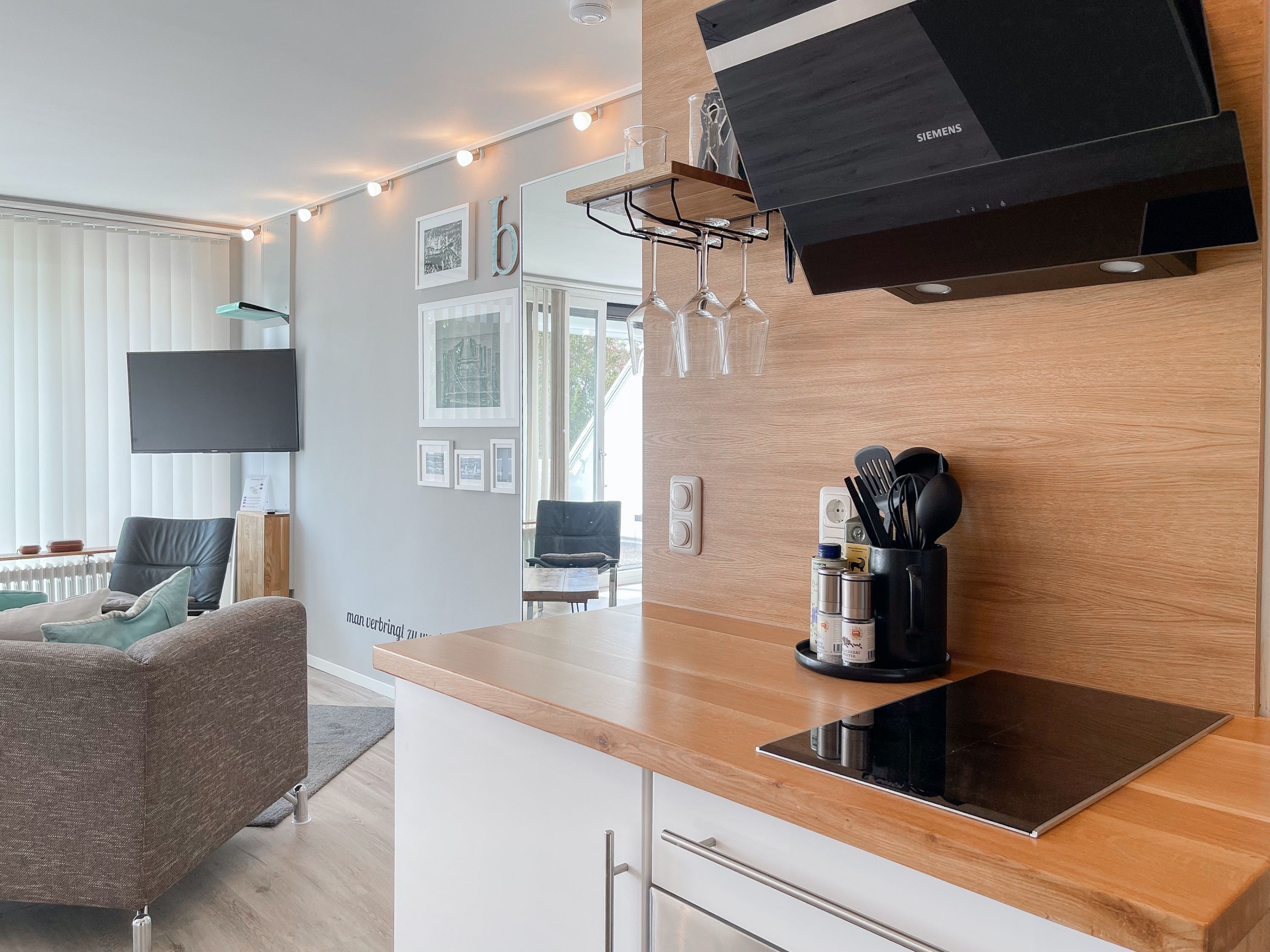 Das mit Herz und Seele gestaltete Studio ist klein aber fein und liegt im 1. Obergeschoss einer terrassenförmigen Wohnanlage zur lichtdurchfluteten Südseite. Ein kleines Raumwunder mit Liebe zum Detail und reichlich Staufläche, da jeder qm optimal genutzt wurde. Der stylische Wohnbereich mit Sofa, TV, Bluetoothradio, Schrankbett und einem Essbereich für 2 Personen, präsentiert sich lichtdurchflutet dank bodentiefer Fensterelemente. Das Doppelbett verschwindet tagsüber im Schrank und ist mit nur einem Handgriff zur Schlafenszeit bereit. Ein Highlight ist der äußerst großzügige Sonnenbalkon mit elektrischer Markise, Gartenmöbeln und Sonnenliege. Die kleine Küche fügt sich perfekt ein und ist mit allen technischen Geräten wie Spülmaschine, Backofen und 2er Induktionsfeld ausgestattet. WLAN steht selbstverständlich zur kostenlosen Nutzung zur Verfügung. Es gibt ein kleines Duschbad und einen Garderobenschrank im Eingangsbereich. Der kleine Strandräuber liegt direkt neben der Freibeuter-Höhle, ideal zum Urlauben unter Freunden, ganz nah beieinander mit Privatsphäre.