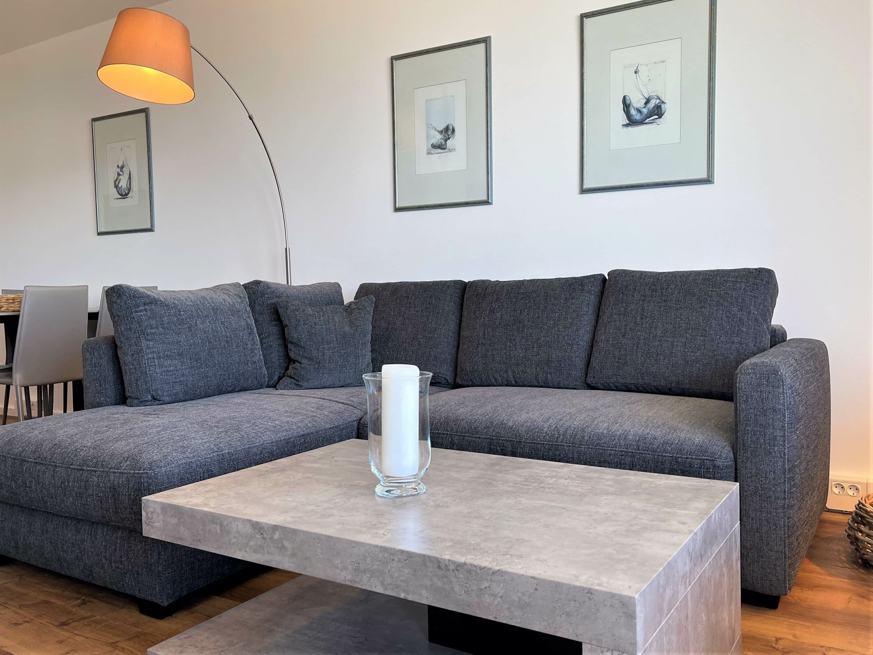Dieses komfortabel und elegant eingerichtete Appartement ist im Jahr 2022 frisch saniert worden und bietet Ihnen ein Wohnerlebnis für höchste Ansprüche. Genießen Sie den umwerfenden Blick auf die Lübecker-Bucht direkt vom Wohnzimmer und vom Schlafzimmer. Die Ferienwohnung lädt zum Wohlfühlen und Entspannen fern des Alltags, direkt am Strand ein. Das Wohnzimmer besteht aus einer großen gemütlichen Schlafcouchgarnitur (160cm x 200cm) mit Tisch, einem maritimen Treibholz-Sideboard, einem großen Smart-TV, sowie einem Esstisch mit 4 modischen Stühlen. Im Schlafzimmer befindet sich ein gemütliches Boxspringbett (180 cm x 200 cm), ein großer Kleiderschrank , sowie ein Smart-TV. In der offenen Küche finden Sie unteranderem einen Geschirrspüler sowie einen 4 Flammenherd vor. Das moderne Duschbad, erreichen Sie vom Eingangsbereich aus. Den großen Balkon mit herrlichem Blick auf die Ostsee und den Strand erreichen Sie vom Wohn- und Schlafraum aus. Diese exklusive Ferienwohnung ist in hellen Farbentönen und modern mit maritimen Akzenten eingerichtet.