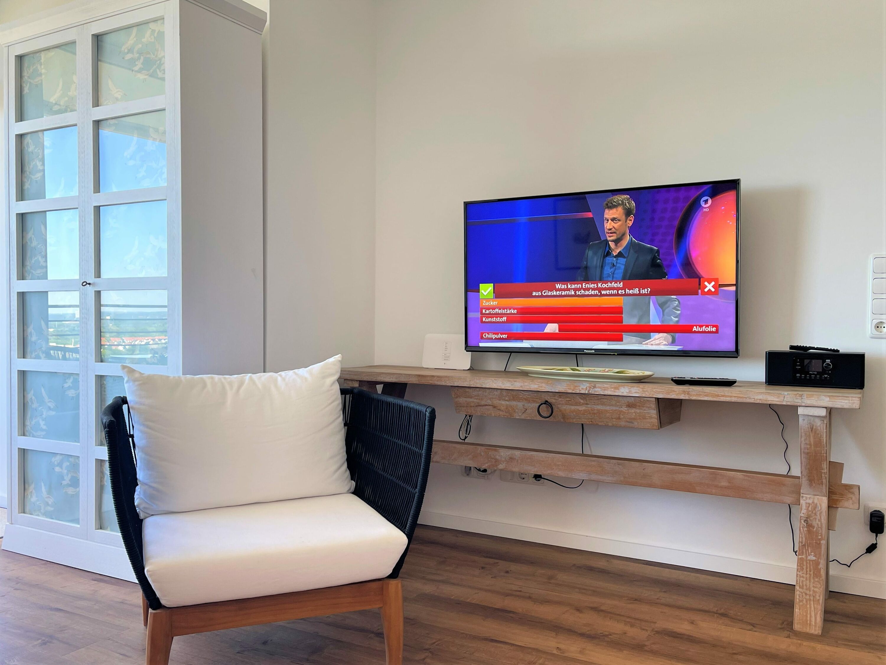 Balkon, Offene Küche, Geschirrspüler, Duschbad/WC, Fön, 2xTV, Stereoanlage, kostenloses W-Lan, Aufzug, Schwimmbad im Haus gegen Gebühr nutzbar, Tiefgaragenstellplatz inkl. (Einfahrtshöhe: 1,85 m).