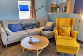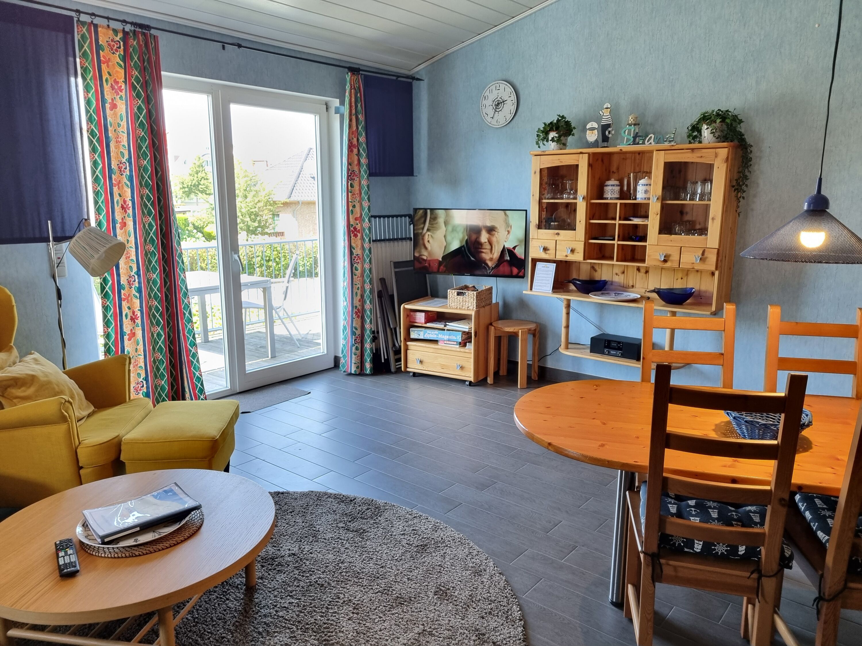Über das Wohnzimmer mit seiner Wohnlandschaft und der integrierten Wohnküche, gelangen Sie auf den zur Westseite ausgerichteten Balkon um nach einem langen Tag voller Ausflüge, bei einem Sonnenuntergang zu entspannen.