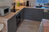 - Wohn-Essbereich mit offener Küche inkl. Mikrowelle, Geschirrspüler, großem Tresen, Sat-TV mit Netflix, DVD- Spieler