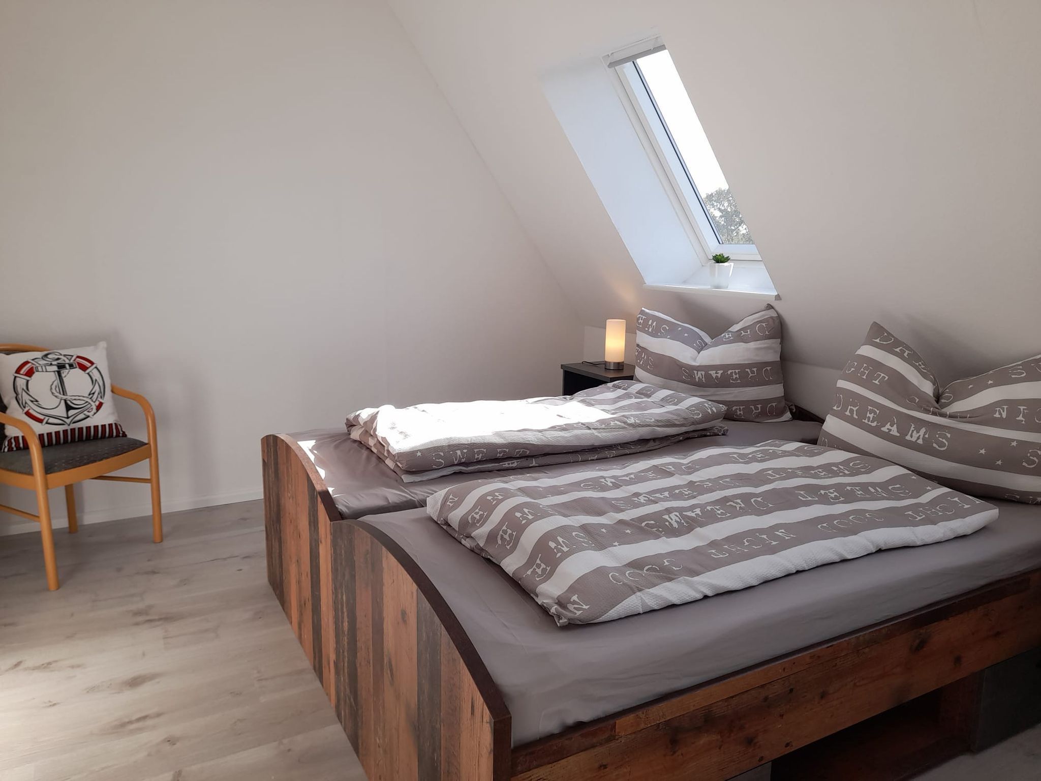 - über eine Treppe gelangt man in den offenen Spitzboden, der mit 2 Schlafsesseln ausgestattet ist.