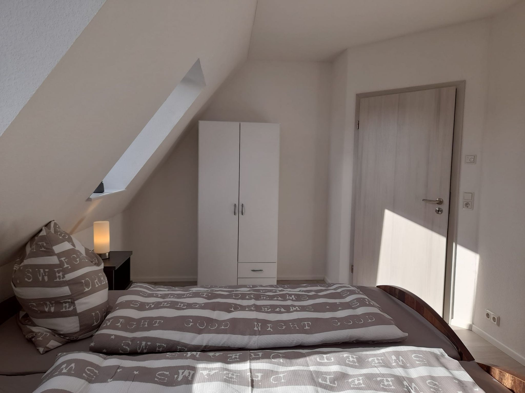 - Schlafzimmer (1x DB) Bettwäsche zubuchbar, 2 Nachttischen, Kleiderschrank