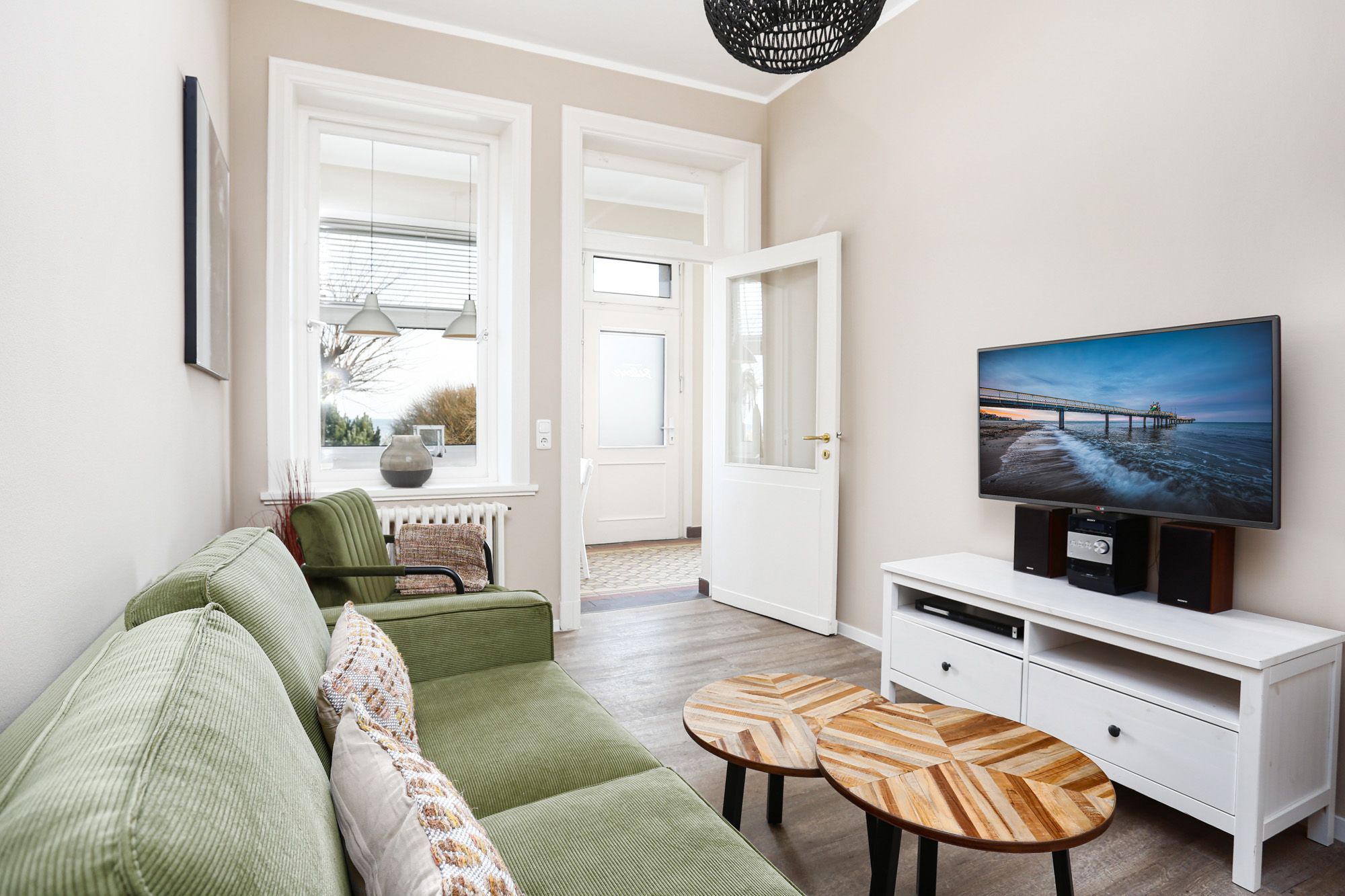 Die 60m² große Niendorf Ferienwohnung Bounty mit Meerblick liegt im Hochparterre des Hauses und verfügt über einen eigenen Außeneingang und ist für bis zu 4 Personen hochwertig ausgestattet.