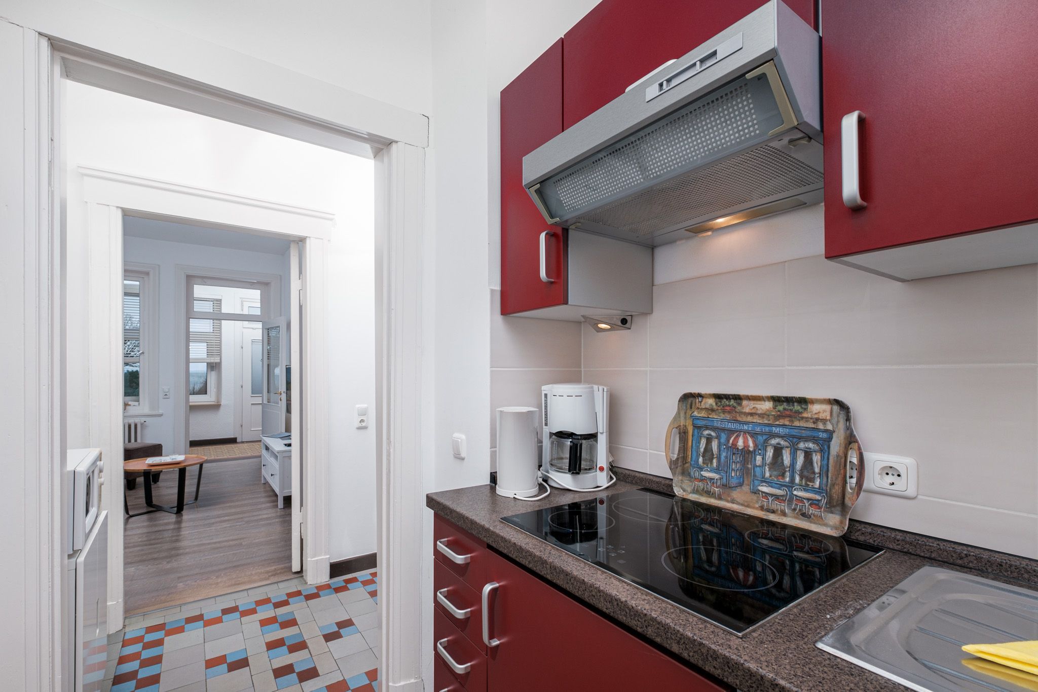 In der separaten Einbauküche mit Geschirrspüler und Mikrowelle lassen sich schmackhafte Speisen zubereiten.