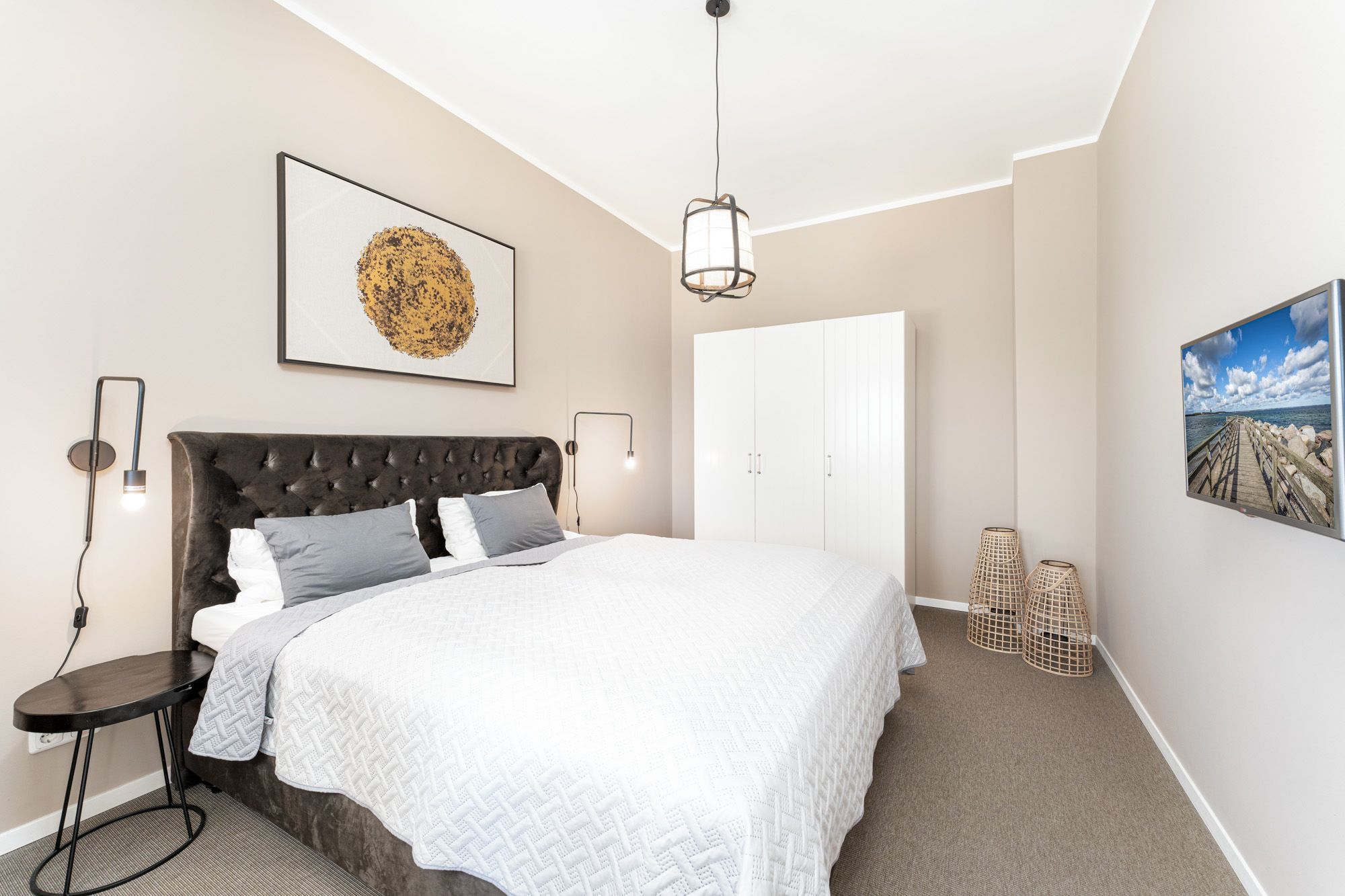 Die zwei Schlafzimmer sind jeweils mit einem gemütlichen Doppelbett und einem weiteren Flachbild-TV ausgestattet.