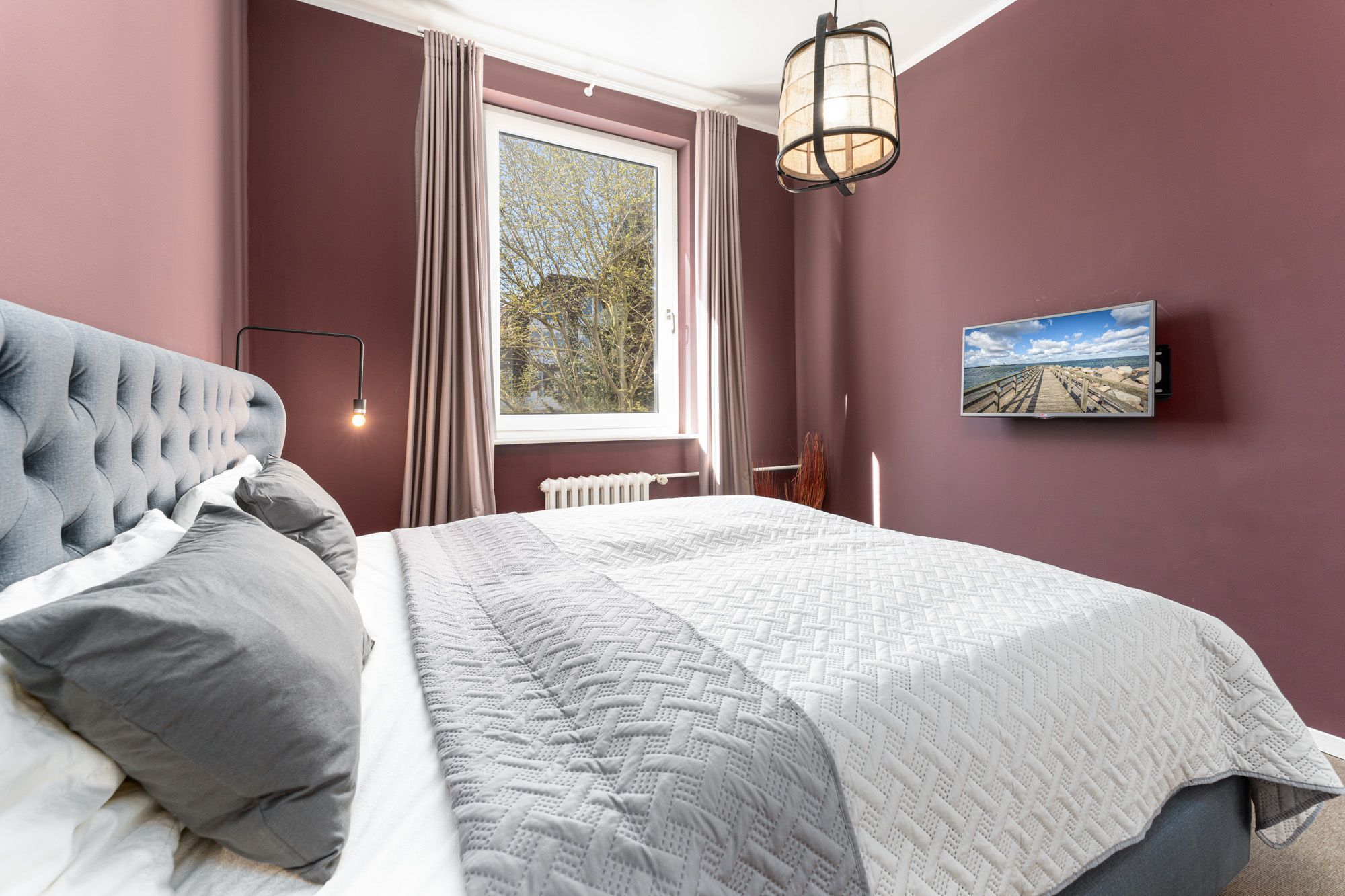 In der 1. Etage des Hauses liegt die 60m² große und für bis zu 4 Personen ausgelegte Niendorf Ferienwohnung Jackie O mit wunderschönem Meerblick.
