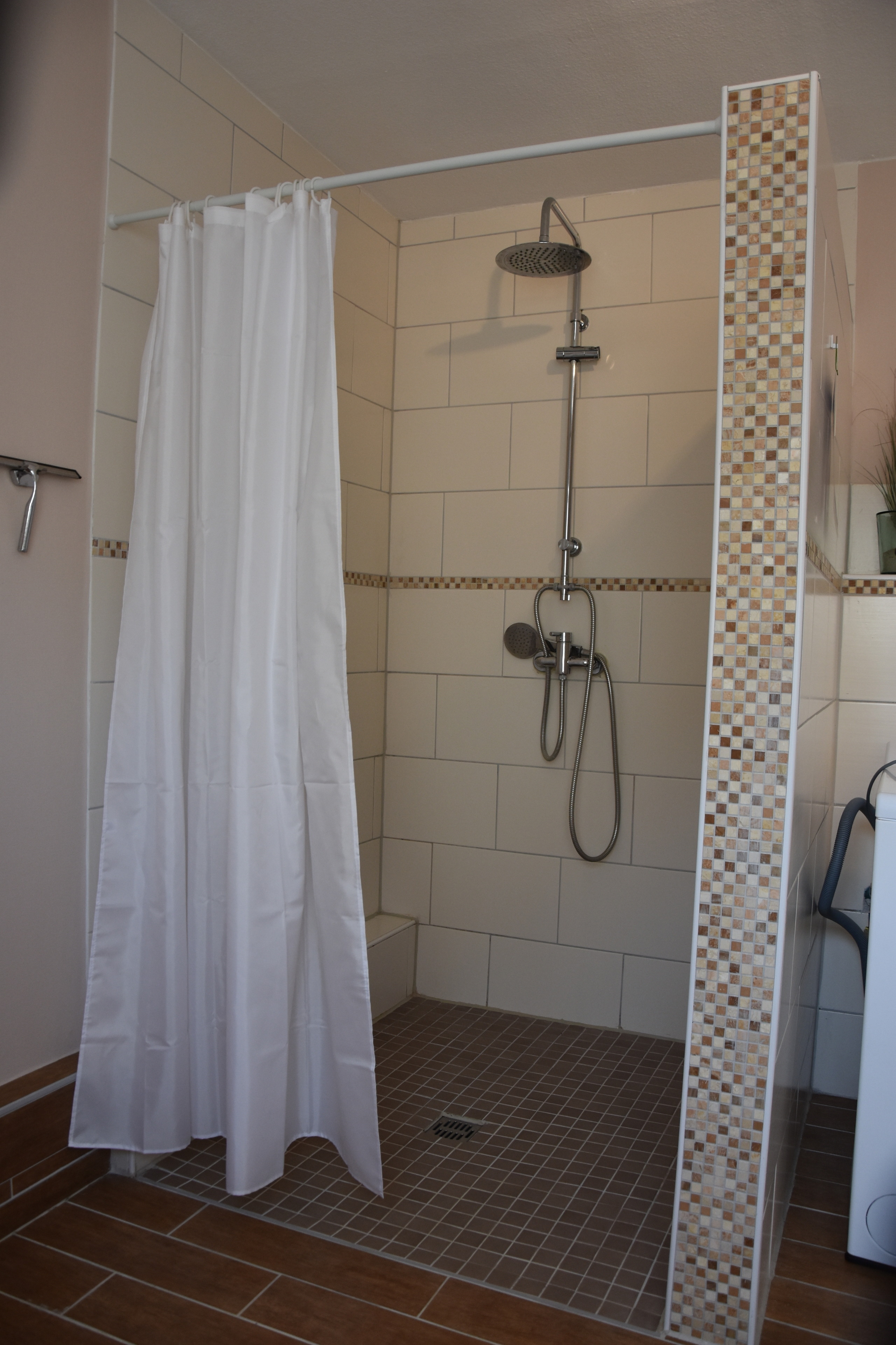 Das Badzimmer hat eine bodentiefe Dusche der Wendekreis beträgt 120cmx120 cm.