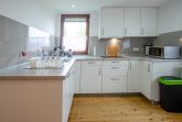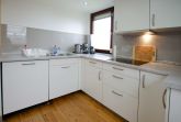 Die helle separate Küche mit Cerankochfeld, Mikrowelle, Backofen und Spülmaschine ist für einen Urlaub gut ausgestattet.