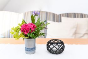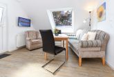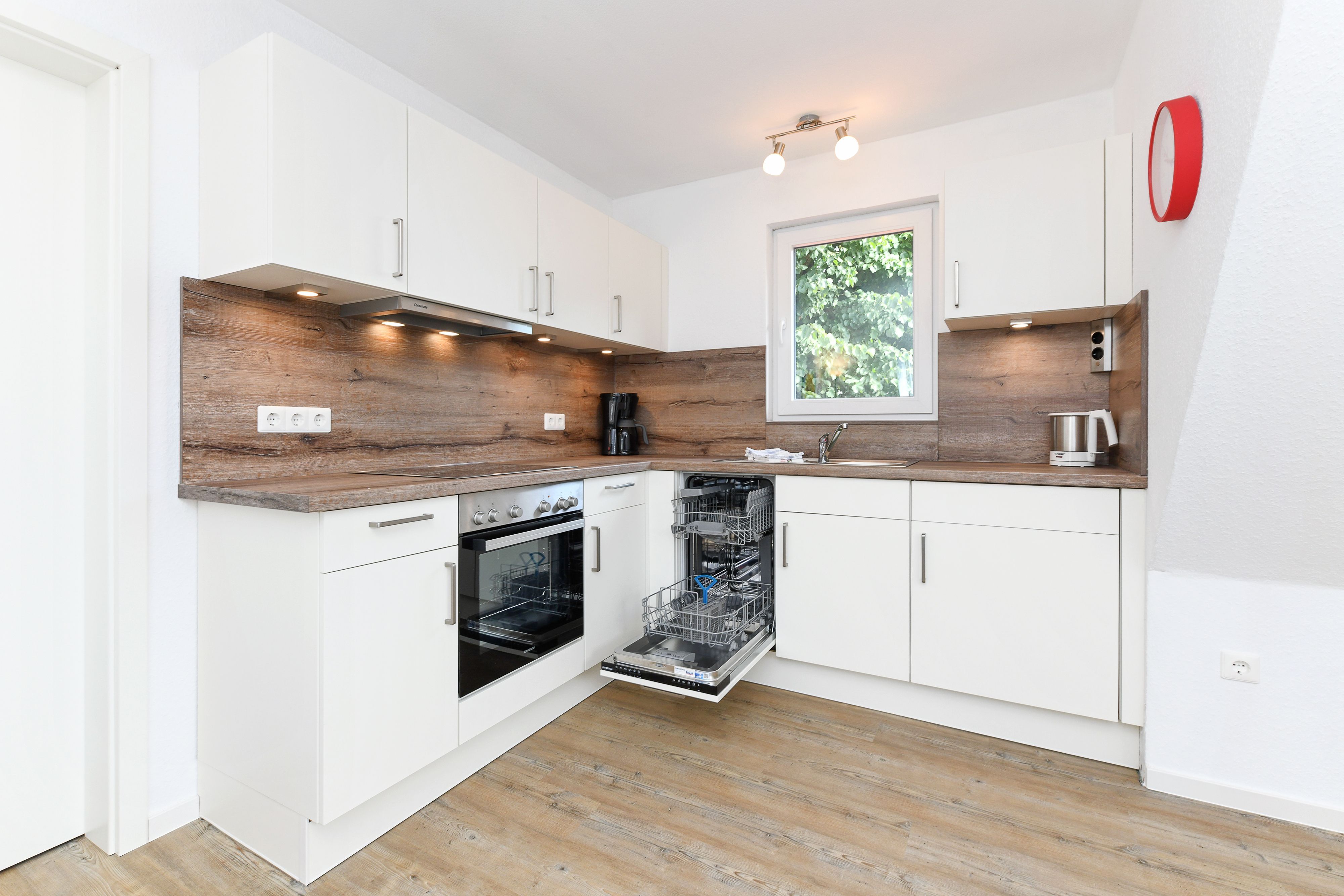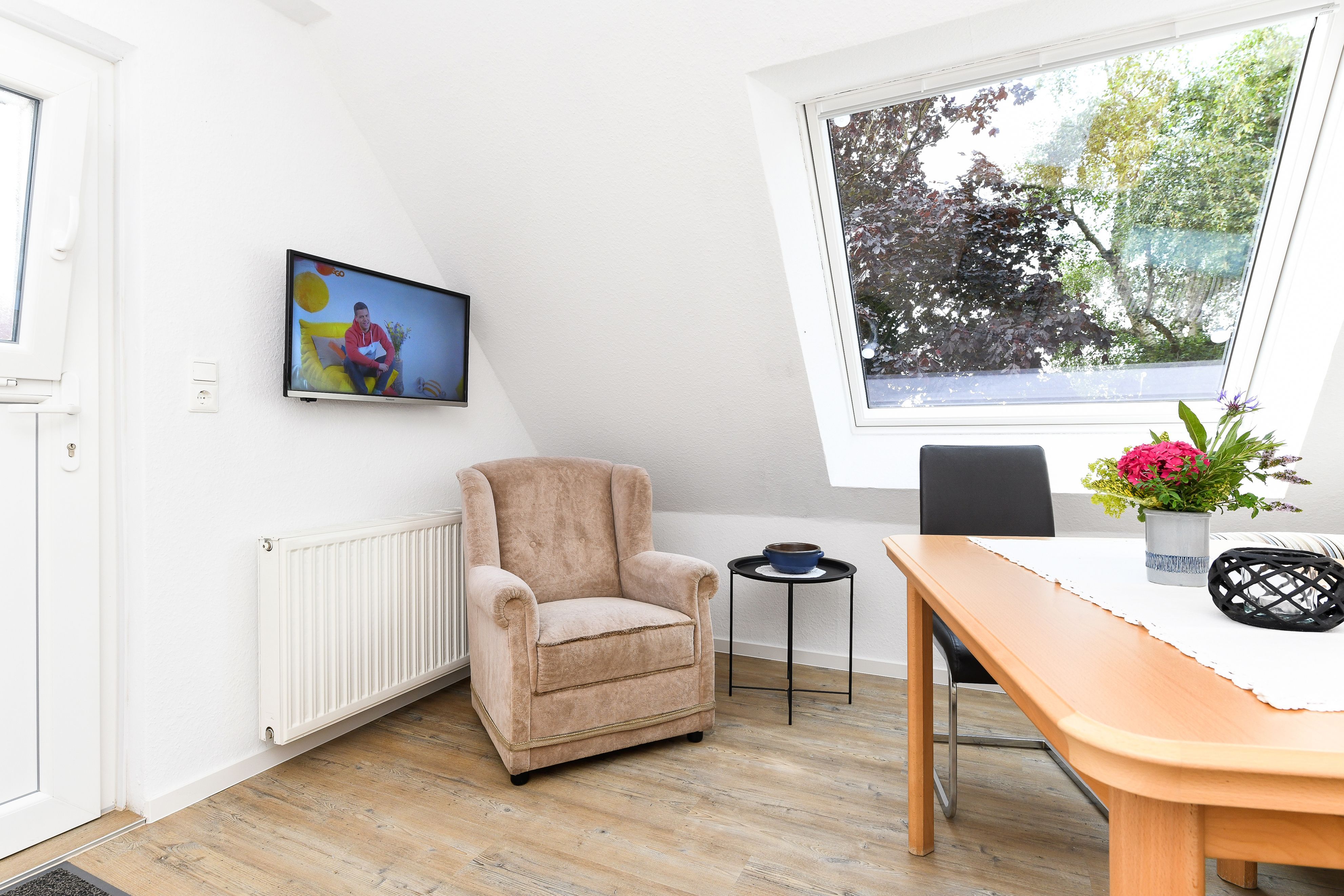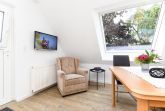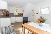 Größe ca. 32 Quadratmeter, Wohnraum mit integrierter Küche, Schlafzimmer, Badezimmer mit Dusche, Waschtisch und WC, Obergeschoss, optimal für 2 bis 3 Personen.