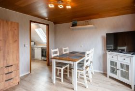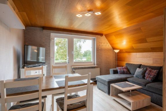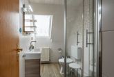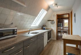 Gemütliche Dachgeschosswohnung mit guter Raumaufteilung. Ankleidezimmer mit Extrabett und Kleiderschrank, Elternschlafzimmer mit Boxspringbett, Kinderzimmer mit 2 Einzelbetten. Küche mit Geschirrspüler und großer Arbeitsfläche. Wohnzimmer mit Couch und Esstisch. Bad mit Dusche und Fenster. .