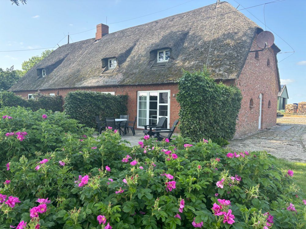 Das Bauernhaus ist ein landschaftstypischer, reetgedeckter Haubarg.