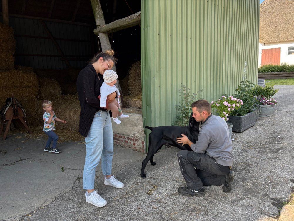Die Minischweine und die niedlichen Kaninchen lassen sich gern verwöhnen. Die Hühner legen täglich ihre Eier, die wir gemeinsam mit den Kindern einsammeln. Auch Enten und Gänse sowie Hund und Katze erwarten Sie auf dem Hof.