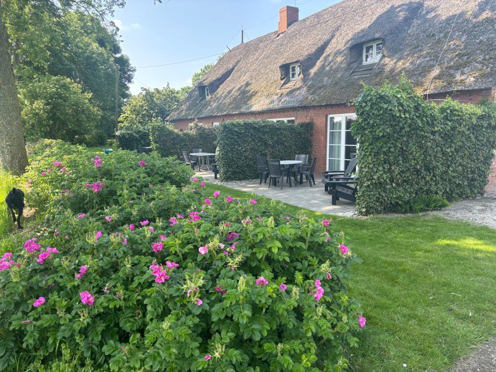 Umgeben von Feldern und Wiesen liegt der idyllische Liethshof mit seinen reetgedeckten Gebäuden in herrlicher Einzelhoflage.