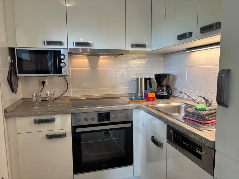 Komplett ausgestattete moderne Landhausküche mit Spülmaschine, Mikrowelle, Tassimo.
