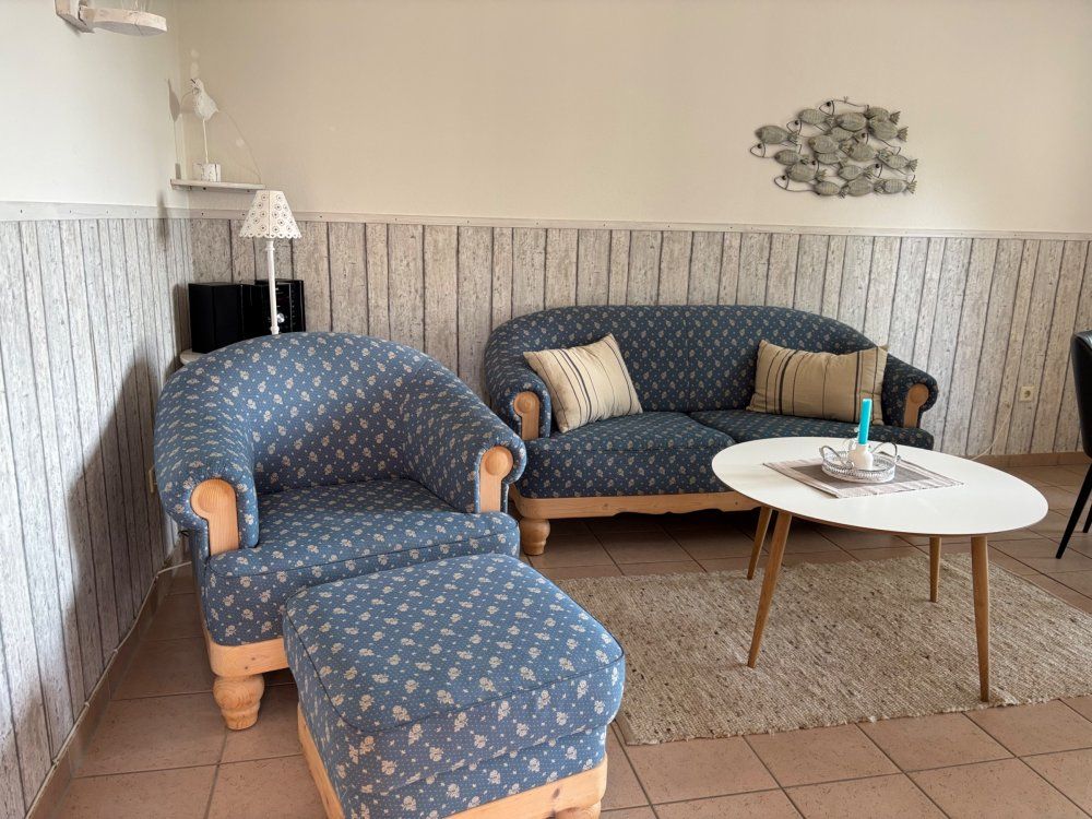 Der Wohnraum ist mit gemütlichen Landhausmöbeln eingerichtet.