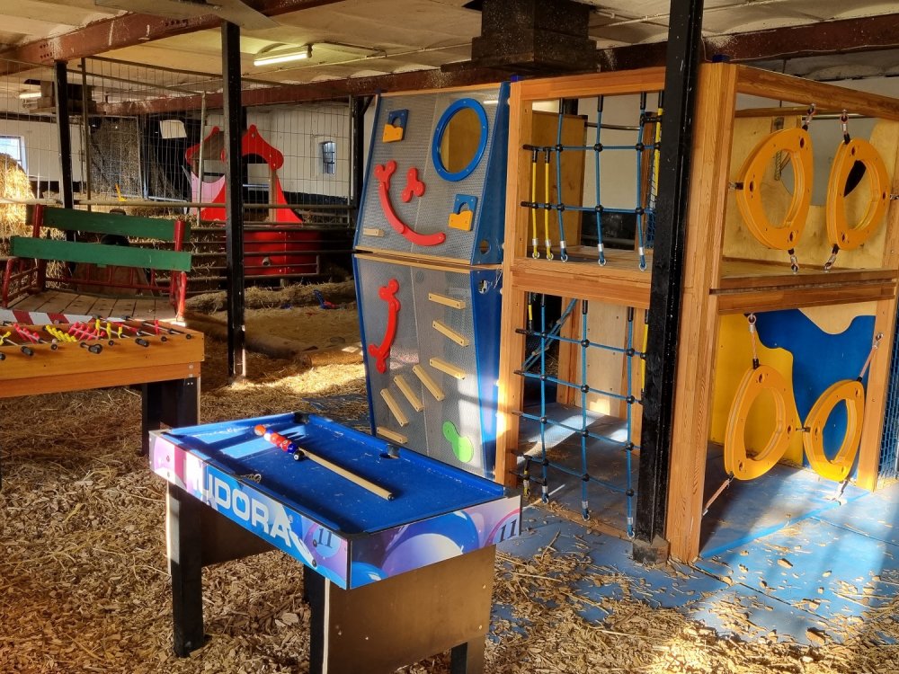* Gemeinschaftsraum, großer Spielplatz, Strohspielscheune, Go-Carts, Trettrecker, Fahrräder und ein Trampoline