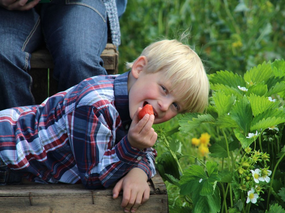 * in der Saison Erdbeeren, Himbeeren und Brombeeren direkt vom Feld