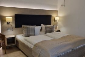 Ihre traumhafte, behindertengerechte, Nichtraucher Wohnung im Erdgeschoss unseres Ferienhauses ist ausgestattet mit einem Schlafzimmer mit Doppelbett und einem weiteren Schlafzimmer mit zwei Einzelbetten, ein Bad mit Fenster ebenerdiger Dusche, unterfahrbarem Waschbecken und ein WC mit Halterungen, die Küche ist vollständig ausgestattet.