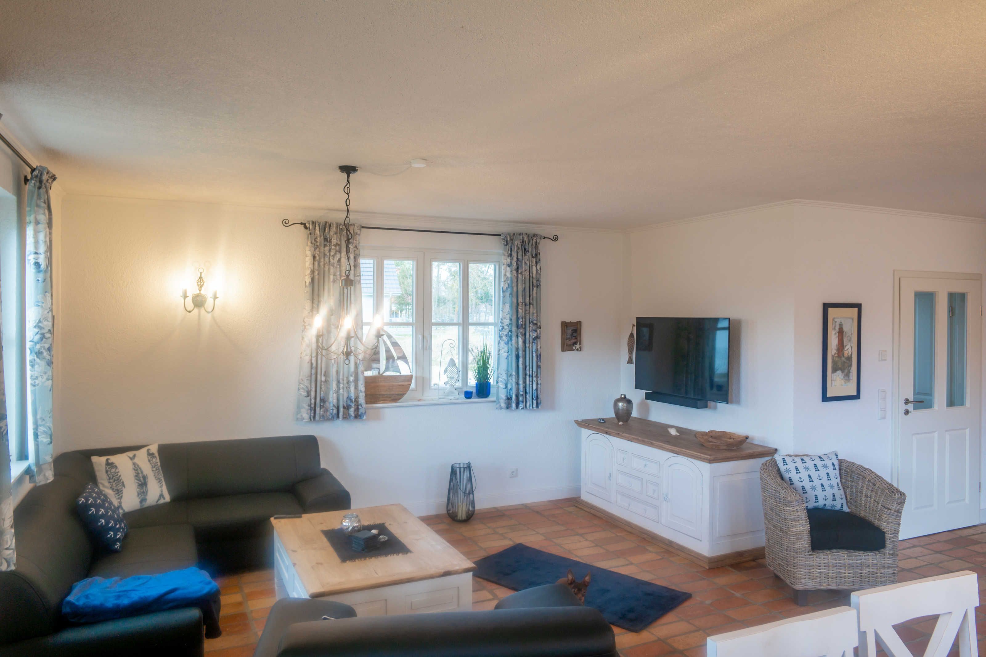 Das Haus mit 137qm Größe ist ideal für 2-6 Pers. ( inkl. Kleinkind ) sowohl für Großfamilien oder zwei befreundete Familien geeignet. Im Wohnzimmer befindet sich eine sehr gemütliche Sofaecke. Ein Flachbild - Fernseher mit Soundbar sorgt für einen schönen Ausklang eines Ostsee -Tages im Kreise der mitreisenden Familie und der Freunde. Hier können Sie sich ausruhen, sich zurücklehnen und die Abendstimmung genießen.