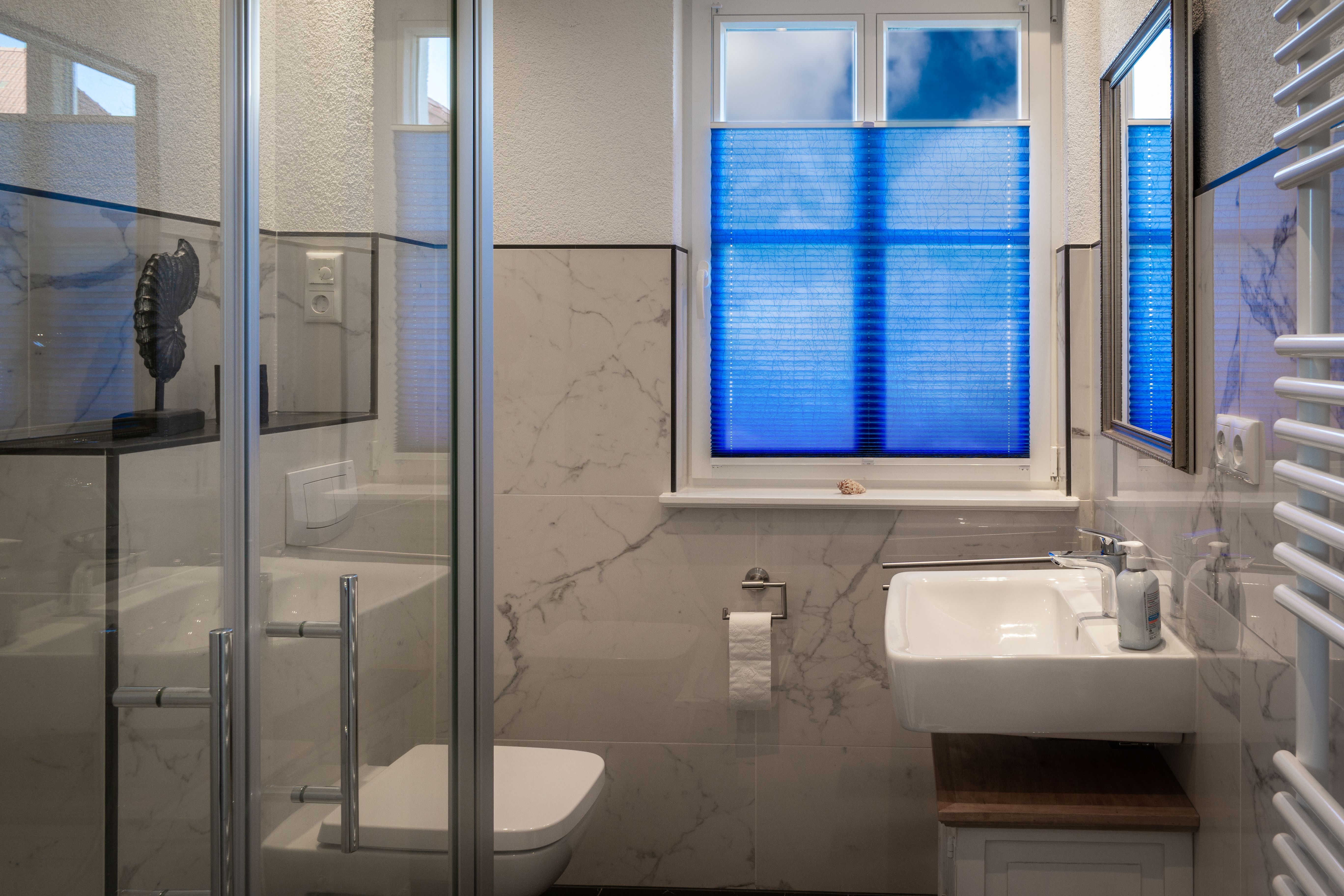 Das Fischerhus in Prerow bietet mit 137 m² Wohnfläche ausgesprochen viel Platz für bis zu 6 Gäste. Im Erdgeschoss erwartet Sie ein großer Raum mit Sitzecke, Esstisch und offener Landhausküche. Der Fußboden ist mit 100 Jahre alten Klinkern gefliest wie in den exklusiven Häusern in Kampen auf Sylt. Es wurden Holzsprossenfenster mit Fensterläden eingebaut. Das gesamte Haus wird mit einer Fußbodenheizung beheizt. Davon abgeteilt finden Sie im Eingangsbereich das WC mit einem Duschbad und den Wirtschaftsraum. Im Obergeschoß befinden sich 2 großzügige und gemütliche Schlafzimmer und das ansprechende und voll ausgestattete Bad sowie ein weiterer Abstellraum. Im Dachgeschoß befinden sich nochmal 2 Betten und eine Sitzecke mit einem 2 ten Fernseher. Die gut möblierte Terrasse mit Grill, Sonnenschirm und Liegen machen das Leben auch draußen zum Vergnügen. Das 630qm große Grundstück ist von der Terrassenseite nicht ensehbar. Im Haus befinden sich 2 große Fernseher mit einer Soundbar. Für die Kinder ist eine Schaukel mit Rutsche vorhanden. Das Grundstück ist eingezäunt, von der Staßenseite mit einer Friesenmauer bewachsen mit Sylter Rosen. Selbstverständlich gibt es Wlan.