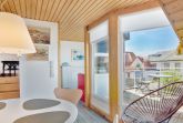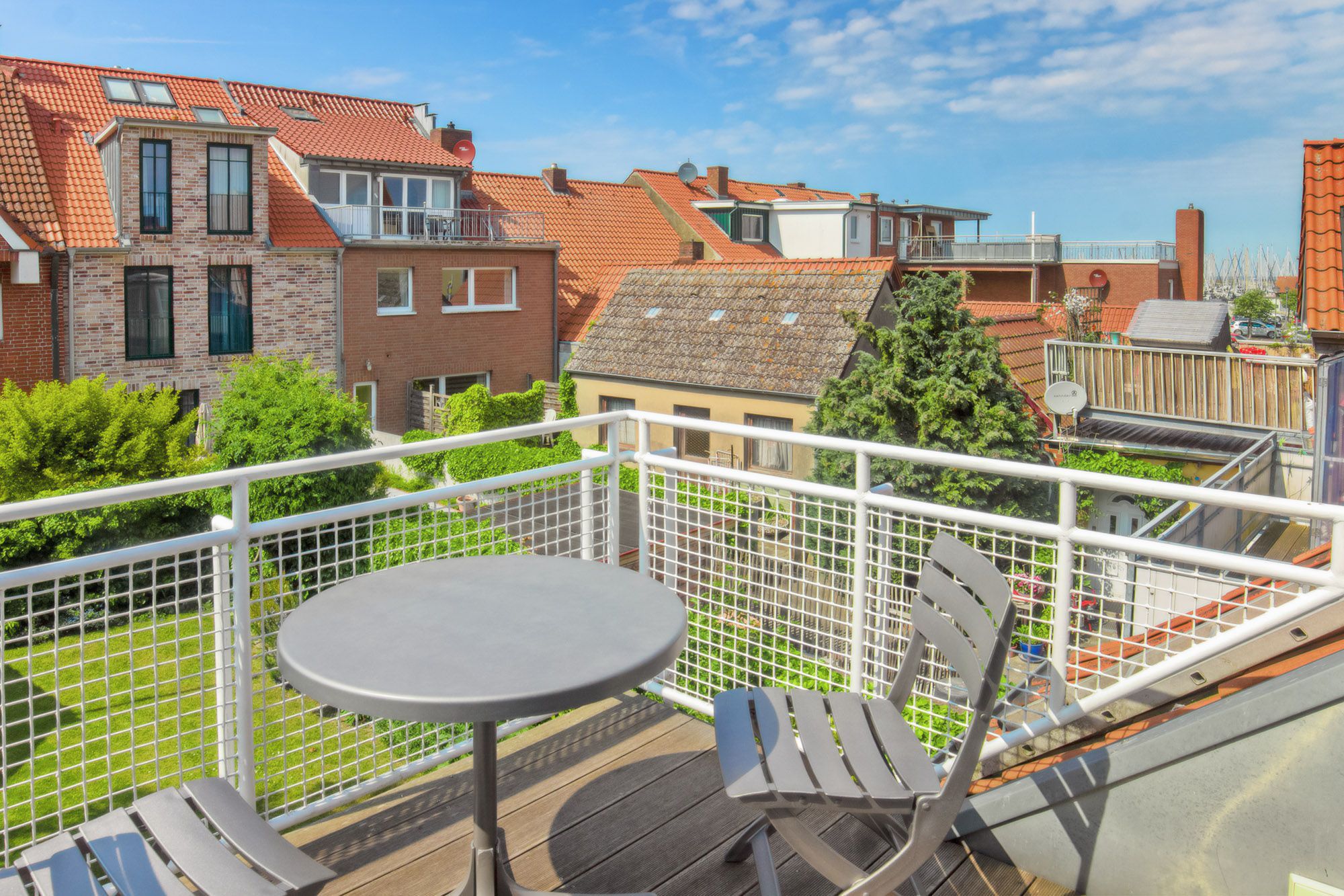 Das helle Apartment Kiekut mit Nautik-Touch und seitlichen Balkonblick auf den Yachthafen ist individuell eingerichtet. Es ist besonders interessant für zwei Personen, aufgrund des Schlafzimmers mit Doppelbett.