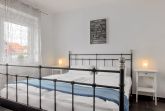 Die Ferienwohnung verfügt im ersten Schlafzimmer über ein Doppelbett (180x200). Das zweite Schlafzimmer ist mit zwei Einzelbetten (90x200) ausgestattet. Ein Kleiderschrank bzw. Kommode bietet dabei viel Stauraum. Safe, Reisebettchen (ohne Bettzeug) und Hochstuhl sind vorhanden. Rollläden sorgen bei Bedarf für die nötige Verdunklung.