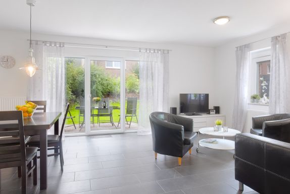 Für maximal 4 Personen bietet diese helle und geräumige Ferienunterkunft auf ca. 62 m² Wohnfläche mit möblierter Terrasse im Erdgeschoss alles für Ihre beste Zeit des Jahres. Hier steht der moderne Komfort für Gäste im Vordergrund. Der Wohnbereich mit Ledersofa und Sitzsesseln bietet gemütliche Annehmlichkeiten. Die technische Ausstattung mit TV, WLAN, Radio und CD-Player bietet auch im Urlaub viel Entertainment. Langweilig wird hier sicher niemand.