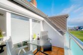Der möblierte Loggia-Balkon mit Südausrichtung erlaubt unvergessliche Sonnenstunden. Elektrische Rollläden, E-Grill, Liegegelegenheiten und Sonnenschirm,...natürlich dabei.