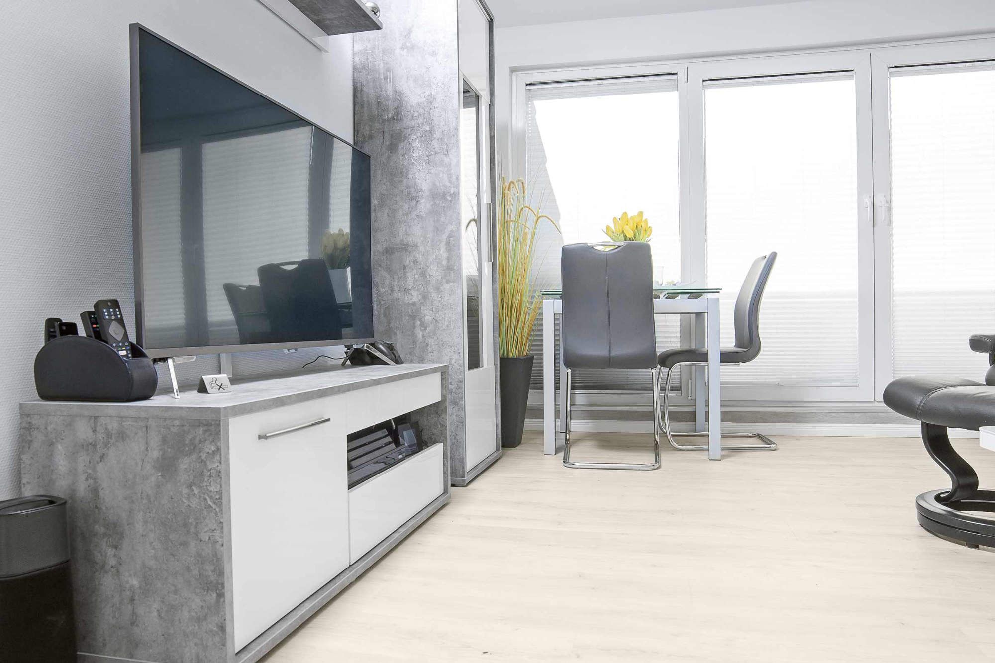 Die Ferienwohnung Seewind, mit dem gewissen Extra! Für maximal 2 Personen bietet diese geräumige Ferienunterkunft auf ca. 52 m² Wohnfläche mit 6 m² möblierter Loggia im 2. Stock alles im Topzustand für Ihre beste Zeit des Jahres. Hier steht der stilvoll-moderne Komfort für Gäste im Vordergrund. Liebevoll designt und hochwertig mit maßgefertigten Einbaumöbeln eingerichtet. Der Wohnbereich mit Ledersofa und Stressless-Sessel bietet gemütliche Annehmlichkeiten. Die technische Ausstattung mit HD-TV, WLAN und Streaming Möglichkeit, Playstation, Surroundsound-Anlage, DVD/Blue-Ray-Player und Internet-Radio ist premium. Bücher und Spielesammlung sind ebenfalls vorhanden. Langweilig wird hier sicher niemand.