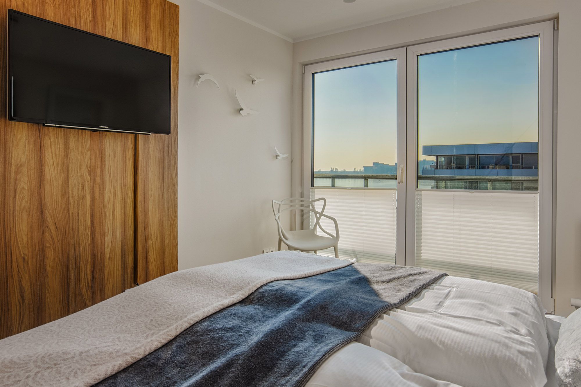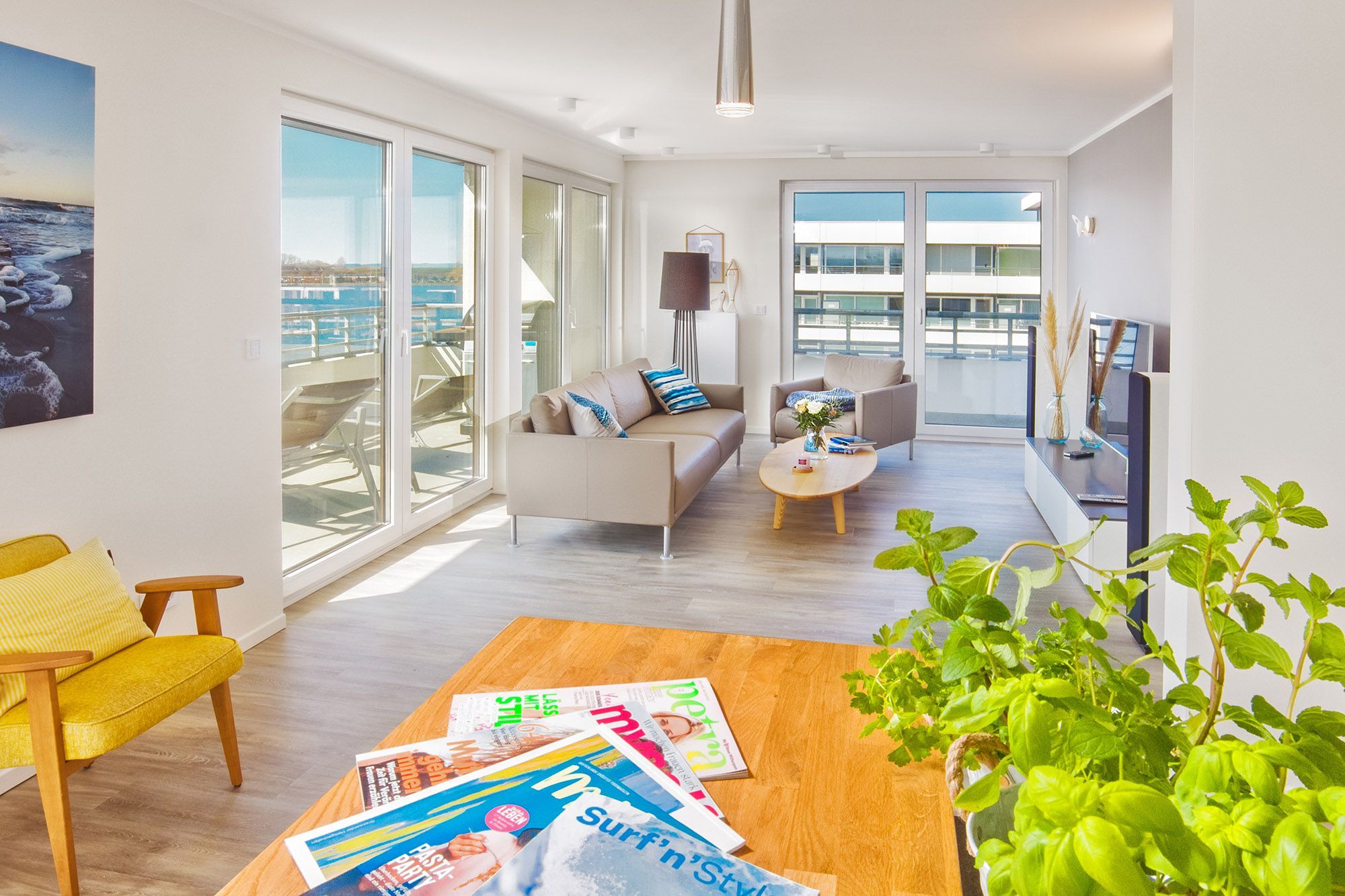 In bester Lage auf dem Steinwarder und mit Blick über die Dächer von Heiligenhafen liegt diese exklusive Ferienwohnung Dat Penthus. Mit eigenem Zugang zum Binnensee und nur wenige Meter von der Ostsee und dem Strand entfernt, hat man aus jedem Fenster einen fantastischen Blick auf das Wasser. Die eigene umlaufende und möblierte Dachterrasse, sowie die bodentiefen Fenster erlauben eine unvergessliche 360° Rundumsicht auf Ostsee, zur Fehmarnsundbrücke, dem Binnensee und der Stadt Heiligenhafen.