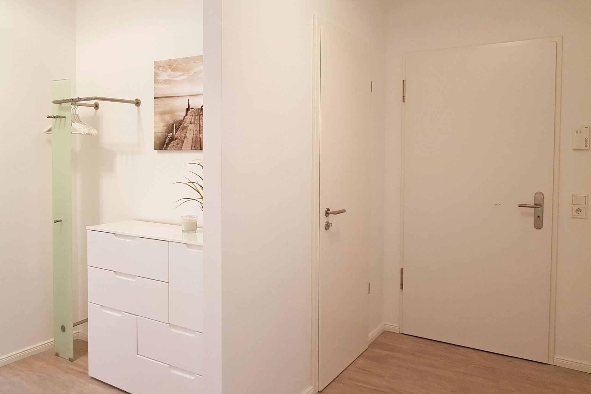 Die ca. 60 m² große Ferienwohnung im 2. Obergeschoss bietet Platz für bis zu vier Personen und heißt auch Hunde herzlich willkommen. Sie ist modern und komfortabel eingerichtet, bewusst ohne überflüssigen Schnickschnack, um eine entspannte Atmosphäre zu schaffen.