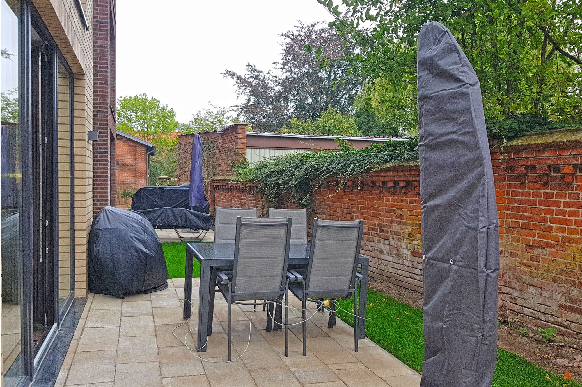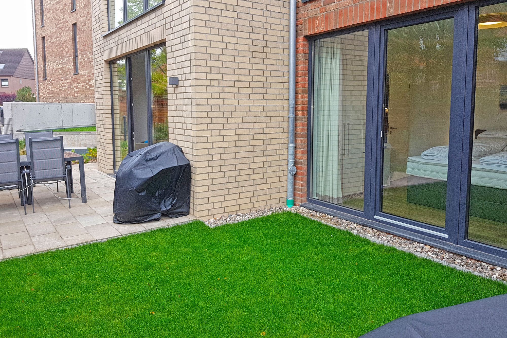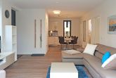 Der gemütliche Wohnbereich ist mit einer bequemen Couch, HD-TV und WLAN ausgestattet. Große, bodentiefe Fenster lassen viel Tageslicht in die Wohnung und bieten einen schönen Blick auf die möblierte Terrasse mit Grill und den nutzbaren Gartenbereich der perfekte Ort für entspannte Stunden an der frischen Ostseeluft.