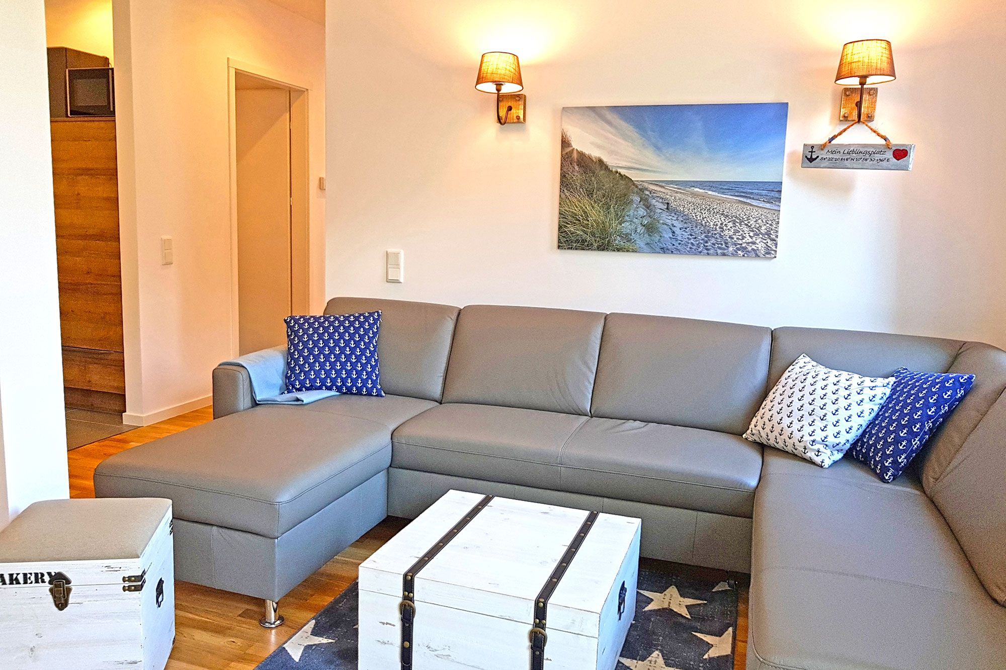 Diese stilvolle Ferienwohnung bietet mit ihren 93 Quadratmetern im Erdgeschoss jede Menge Platz für bis zu vier (+1) Personen. Sie vereint modernes Design mit gemütlichem Ostsee-Flair und sorgt für einen entspannten Urlaub mit der ganzen Familie.