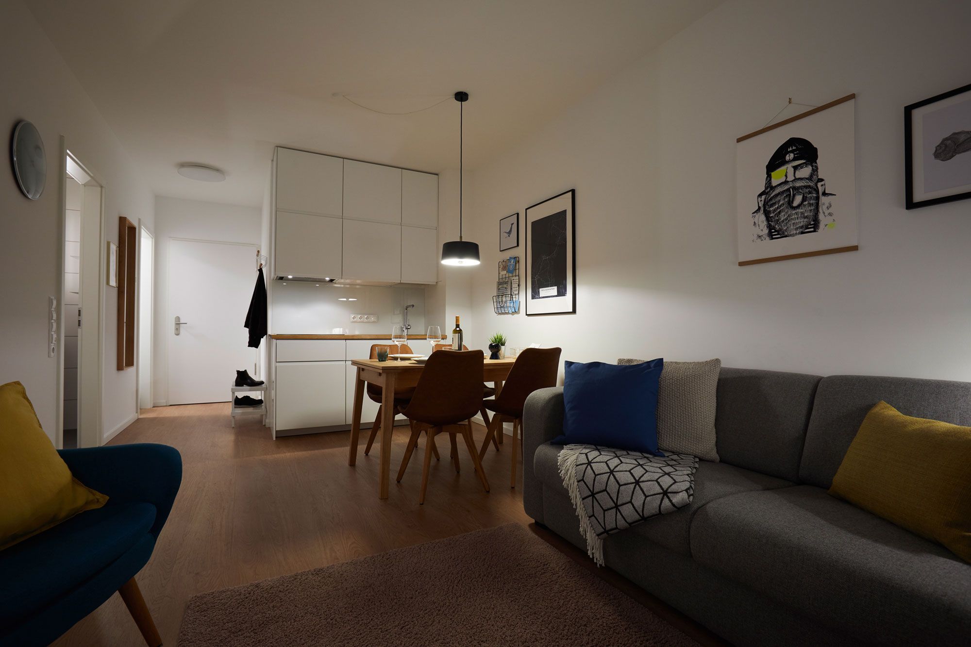 Die neue Ferienwohnung Heiligenhafenkoje bietet auf ca. 41 m² Wohnfläche im 1. Obergeschoss des Torhauses ausreichend Platz für bis zu 2 (+2) Personen und ist ideal für Paare, kleine Familien oder auch Gäste mit Hund denn Ihr vierbeiniger Freund ist hier herzlich willkommen! Die Einrichtung kombiniert modernes Design mit dem traditionellen Ostsee-Ferienwohnungsflair und schafft eine behagliche Atmosphäre zum Wohlfühlen.