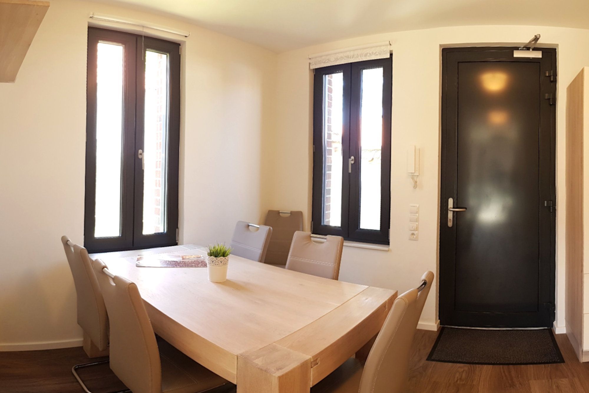 Auch kulinarisch müssen Sie während Ihres Aufenthalts auf nichts verzichten: Die moderne, voll ausgestattete Küche lädt dazu ein, gemeinsam zu kochen und gemütliche Mahlzeiten im angrenzenden Essbereich zu genießen. Direkt neben der Küche befindet sich ein praktischer Abstellraum für Staubsauger und andere Haushaltsutensilien.