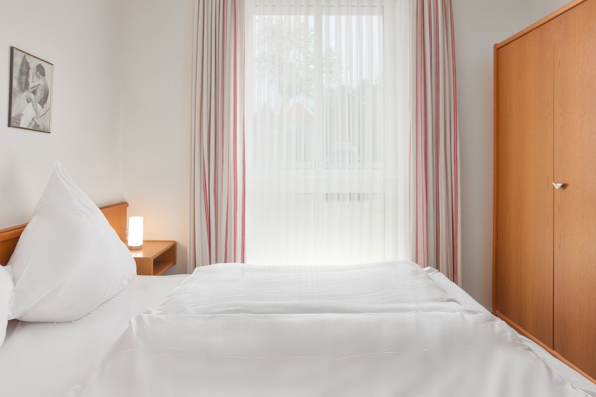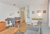 Das Apartment 1 im Erdgeschoss bietet auf etwa 45 Quadratmetern genügend Platz für bis zu vier Personen. Das gemütliche Schlafzimmer mit Doppelbett und großem Kleiderschrank sorgt für erholsamen Schlaf, während die großzügige Schlafcouch im Wohnbereich zwei weitere Schlafmöglichkeiten bietet.