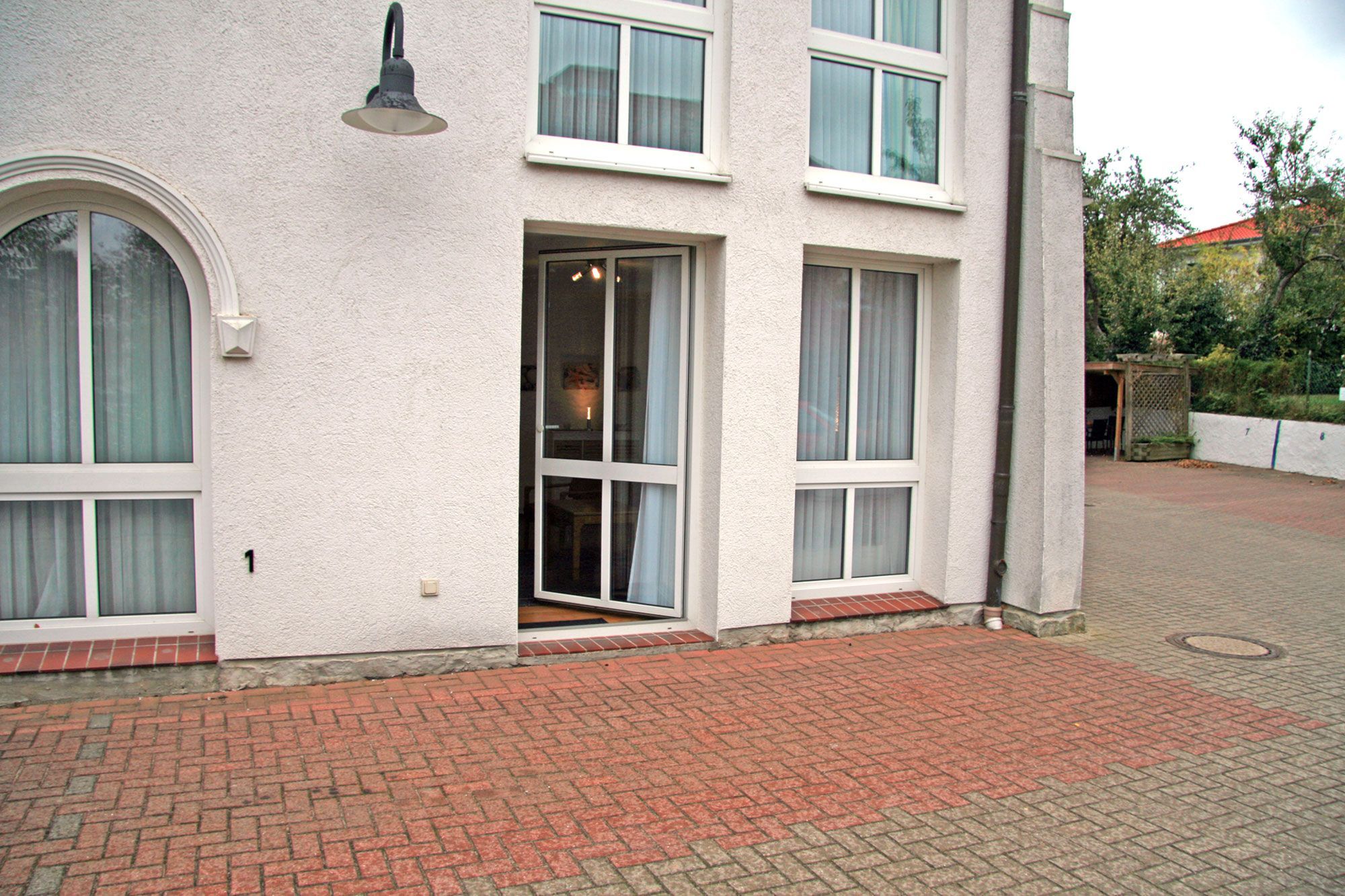 Maximal 1 Hund ist auf Anfrage und gegen Gebühr willkommen. Zum Apartment gehört ein eigener Stellplatz (Nr. 1) auf dem Grundstück. Ein gemeinschaftlicher Unterstellraum für Fahrräder befindet sich direkt neben dem Hauseingang.