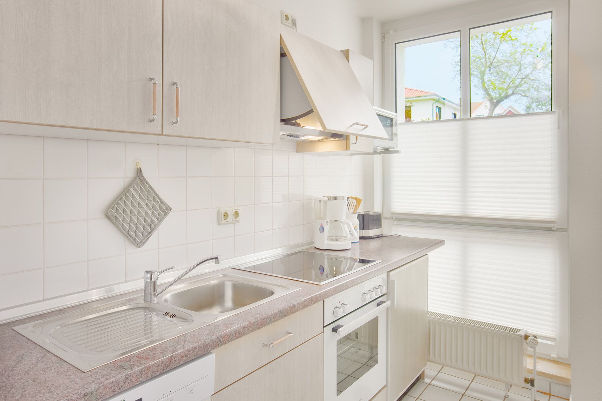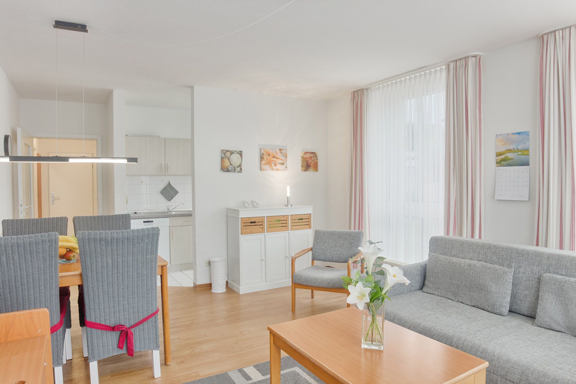 Zur Unterhaltung stehen ein Sat-TV, eine Musik-Anlage mit iPod-Docking-Station und ein WLAN-Hotspot zur Verfügung. Die offene, voll ausgestattete Küche mit Geschirrspüler lässt keine Wünsche offen und bietet viel Raum für kulinarische Kreationen. Der angrenzende Essbereich lädt zu gemeinsamen Mahlzeiten ein.