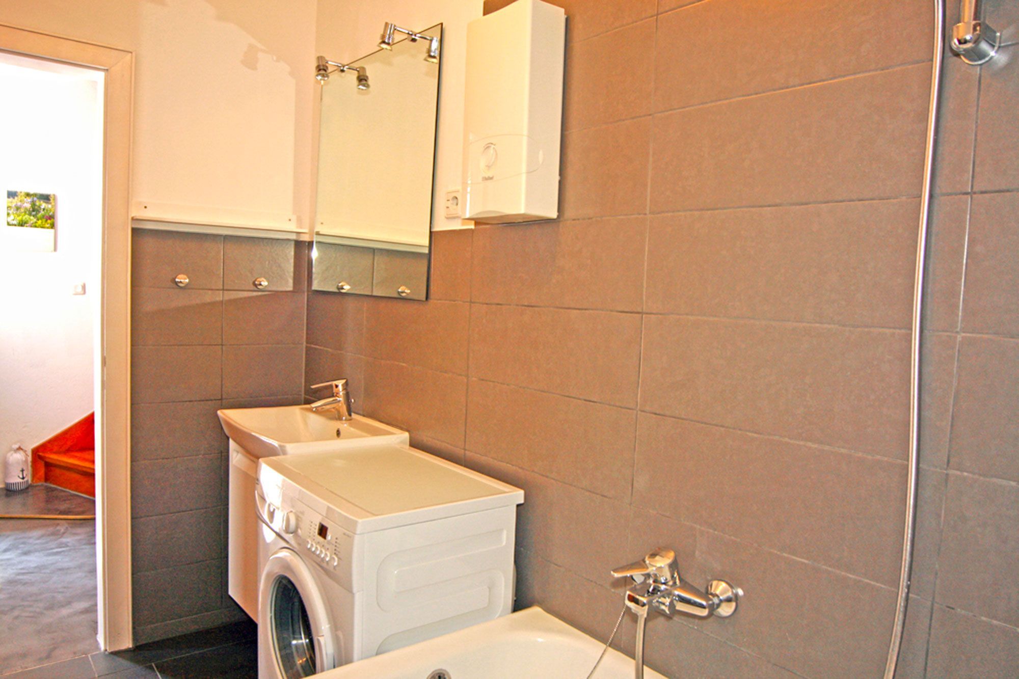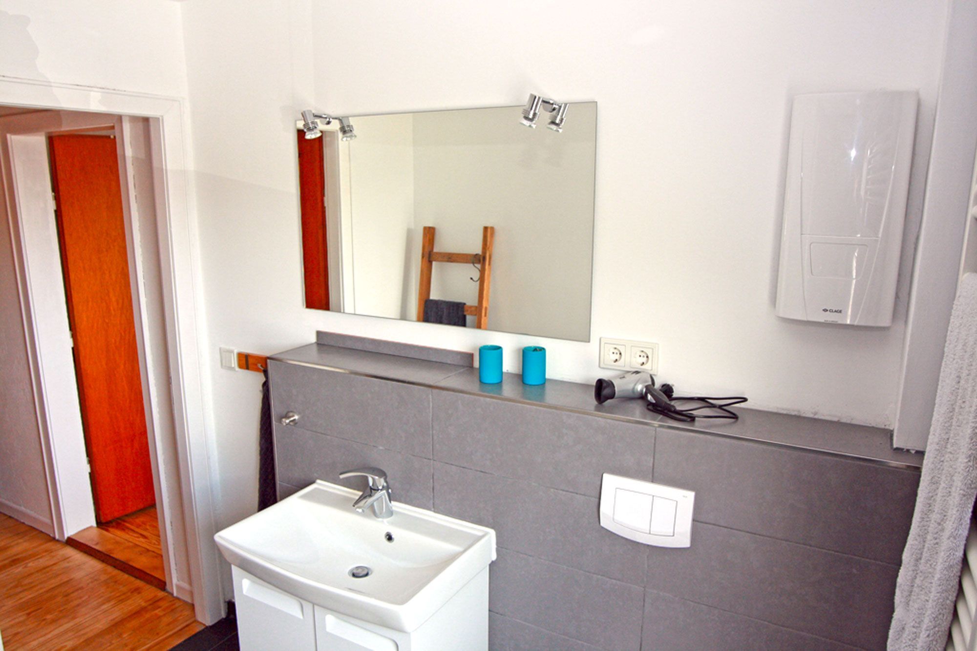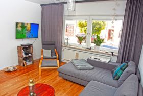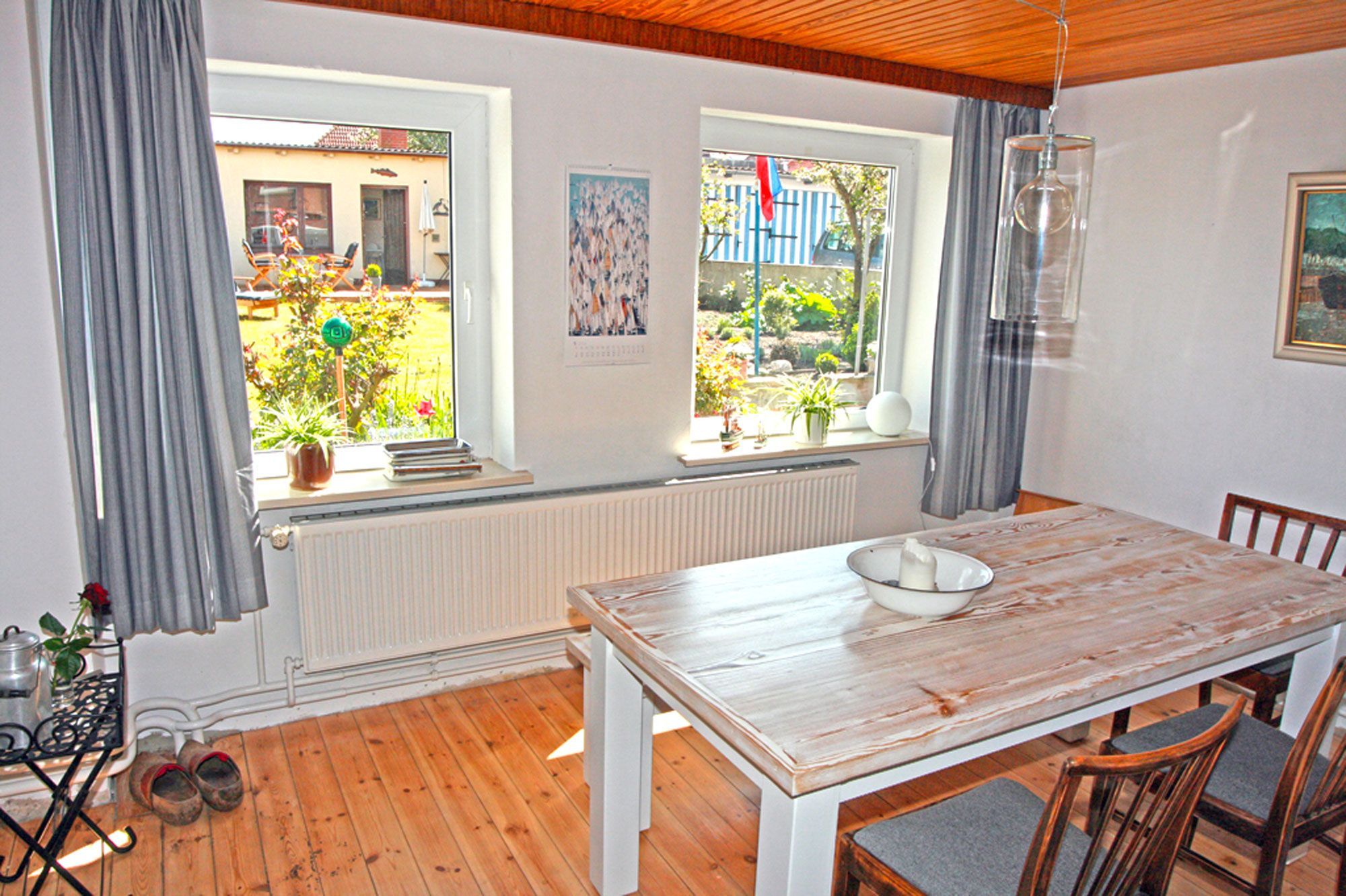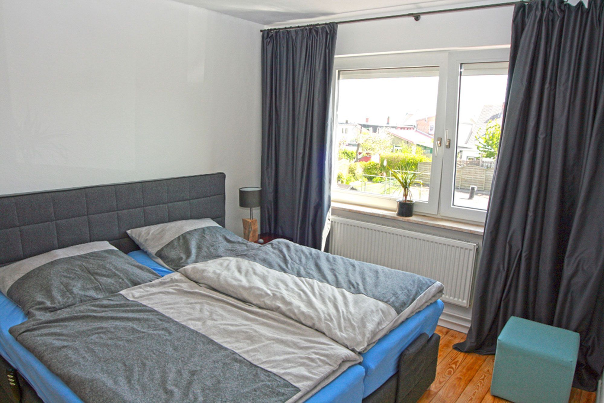 Das schöne und ruhige Einfamilienhaus bietet sehr viel Platz, ist modern eingerichtet und hat einen sehr sonnigen Garten mit direktem Ostseeblick. Haus Achterstag ist besonders für Familien und Kleingruppen geeignet, da es über drei Schlafzimmer im Obergeschoss, sowie einer Schlafcouch im Wohnzimmer verfügt. Der Wohnbereich ist stilvoll und gemütlich eingerichtet, mit einem Sofa für jedermann, HD-TV und Parkett-Fußboden. Im Obergeschoss befinden sich zwei Zimmer mit Doppelbetten, ein Kinderzimmer, sowie ein frisch saniertes Badezimmer. Ein Doppelzimmer ist zusätzlich noch mit einem TV ausgestattet. Verdunklung mit Rollläden ist in allen Zimmern sowohl mechanisch oder elektrisch möglich. Ein Baby-Reisebett und ein Hochstuhl stehen zur Verfügung. Im Erdgeschoss befindet sich das Wohnzimmer, ein zusätzliches Bad inklusive Wanne, sowie die großzügige Küche mit angrenzendem Esszimmer mit Blick in den immer-grünen Garten. Die große, voll ausgestattete Küche mit einem Backofen, Ceran-Herd mit vier Platten, Spüler, Kaffeemaschine, Wasserkocher und vielem mehr, lässt keine Wünsche offen. Neben der Küche geht es hinaus in den neu angelegten Garten, der über eine Sonnenterrasse, mehrere Sitzgelegenheiten und einen Fahrradschuppen verfügt.