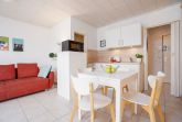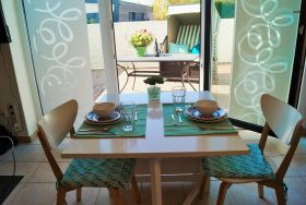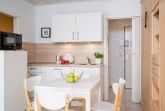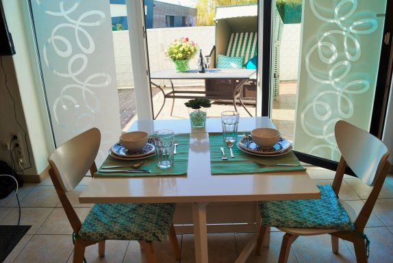 Das 2-Raum-Terrassen-Appartement bietet eine ansprechende Komplettausstattung in direkter Strandlage. Der Wohnraum verfügt über einen Fliesenboden, ein Polstersofa, einen Flachbild-TV mit Kabelanschluss und eine Schrankwand mit integriertem Schrankbett, das zwei Schlafplätze mit einem Topper (160x190 cm) bietet. Die 2020 erneuerte Einbauküche ist funktional gestaltet. Im separaten Schlafraum befindet sich ein Doppelbett (140x200 cm) und ein Fenster, das zusätzlich zwei Schlafplätze bietet. Das moderne Duschbad wurde 2022 renoviert. WLAN ist im Appartement verfügbar. Die Nutzung eines PKW-Stellplatzes auf der Terrasse ist im Angebot enthalten (max. 3,00 m Breite und 4,65 m Länge). Das Grillen ist ausschließlich mit einem Elektrogrill gestattet. Rauchen sowie Haustiere sind in diesem Appartement nicht erlaubt.