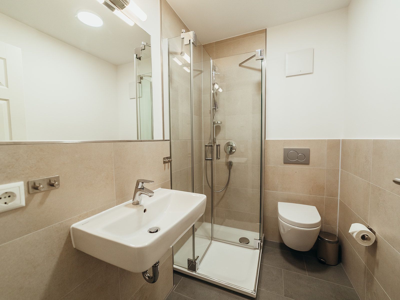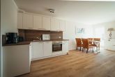Herzlich Willkommen in dieser schönen, ebenerdigen 3 Zimmer-Neubauwohnung. Die Wohnung liegt im tiefpaterre, hat ca. 64m² Wohnfläche und verfügt über 2 Schlafzimmer. Vom Flur aus gelangt man in ein anheimelndes Wohn-Esszimmer mit integrierter, voll ausgestatteter Küchenzeile und einer Terrasse, die die Möglichkeit, Speisen in freien einzunehmen, bietet. Links vom Korridor aus, geht es in einen großzügigen Wohnraum, rechts findet man ein Duschbad/WC mit angrenzendem Schlafzimmer, geradeaus befindet sich ein Gäste/WC mit danebenliegendem Schlafzimmer. Die Schlafzimmer verfügen über Boxspringbetten. Ein Hund ist gegen eine Gebühr erlaubt.