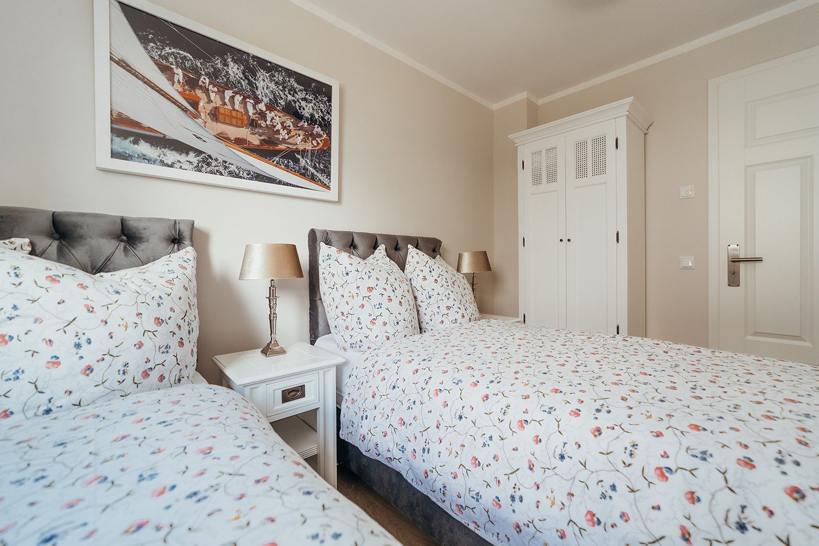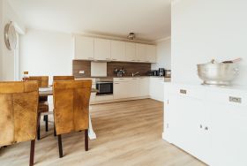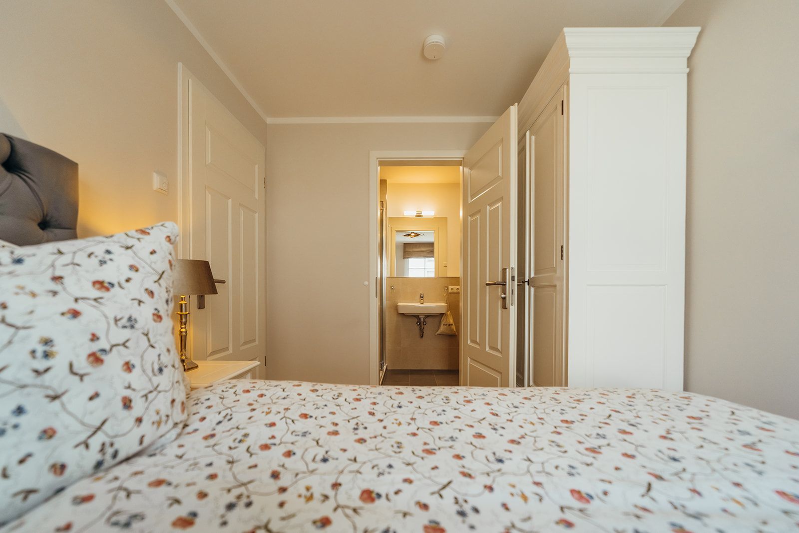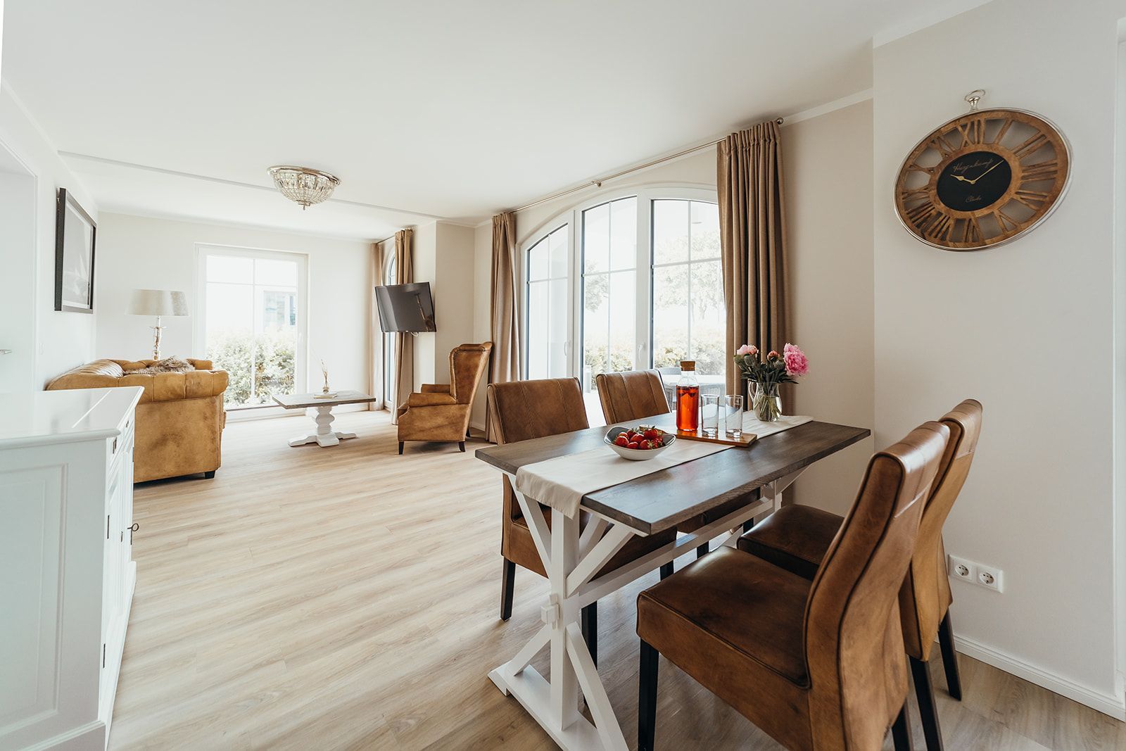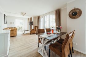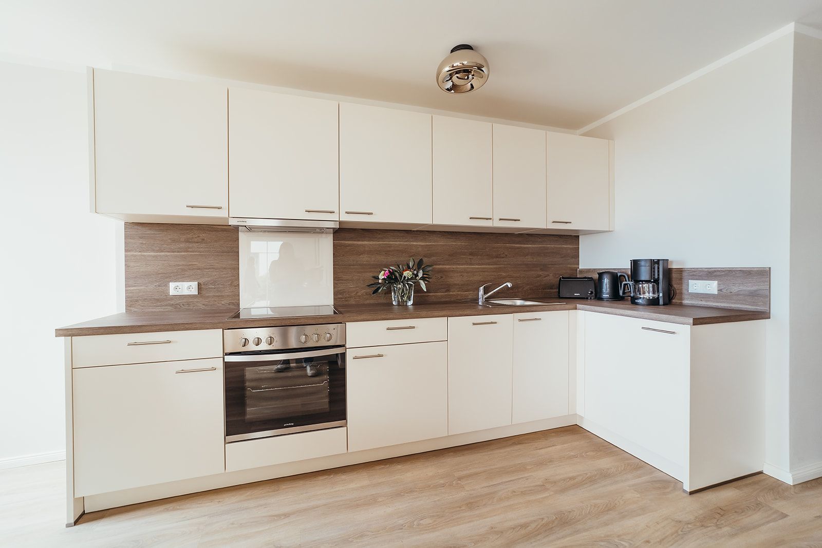 Diese Wohnung bietet einen direkten, unverbauter Blick durch bodentiefe Fenster auf den Strand von Haffkrug. Die Wohnung ist ca. 60m² groß. Zwei separate Schlafzimmer mit Boxspringbetten, ein Wohn-Essbereich mit integrierter Küchenzeile, zwei Duschbäder mit WC und eine schöne Terrasse mit Balkonmöbeln umschreiben dieses wunderschöne Feriendomizil in unserem Neubau.