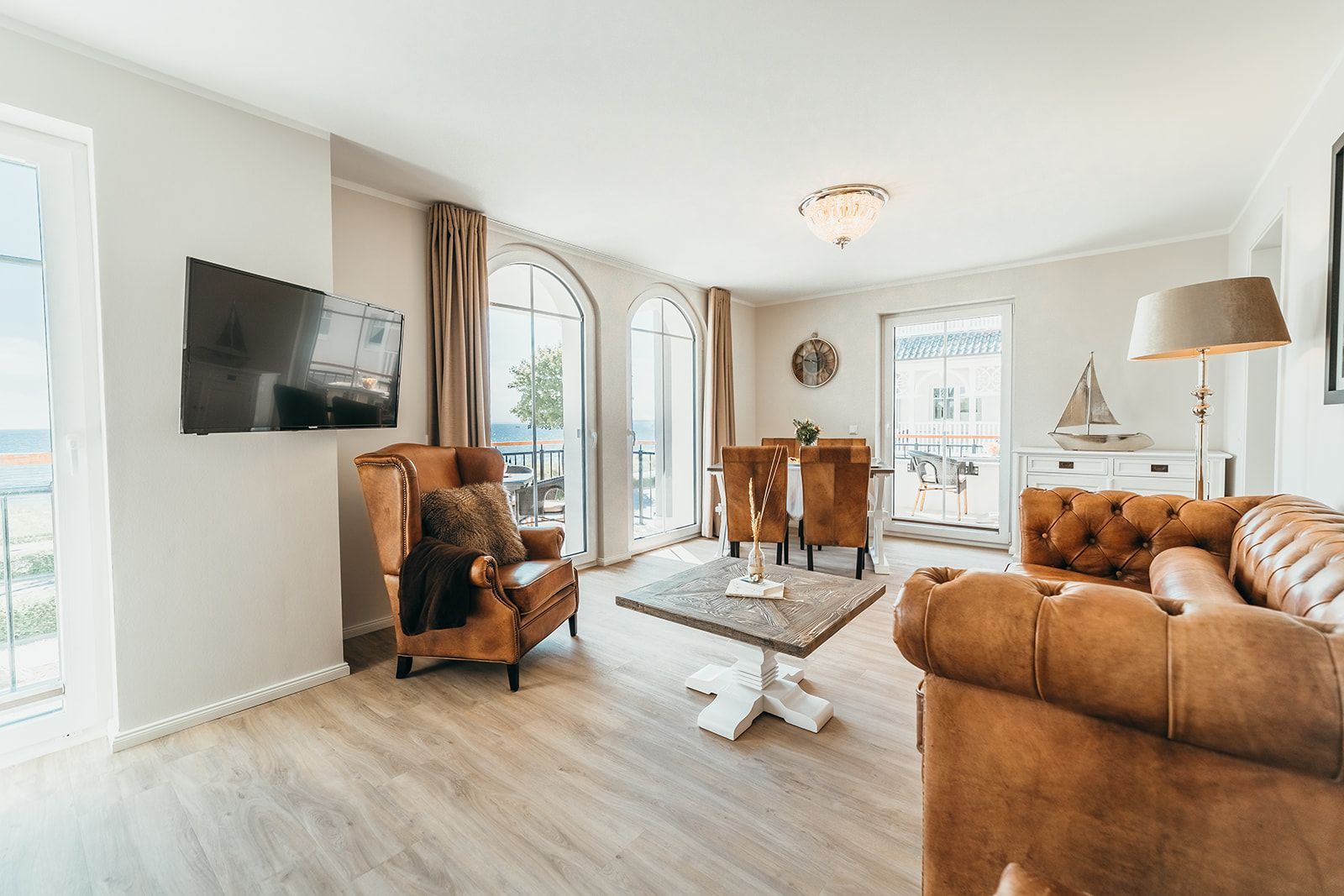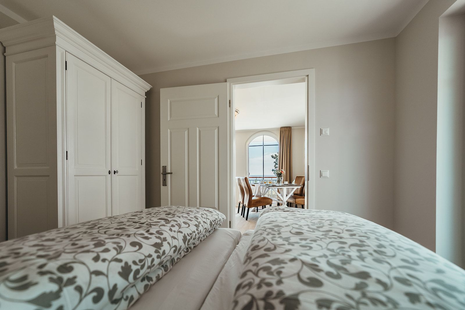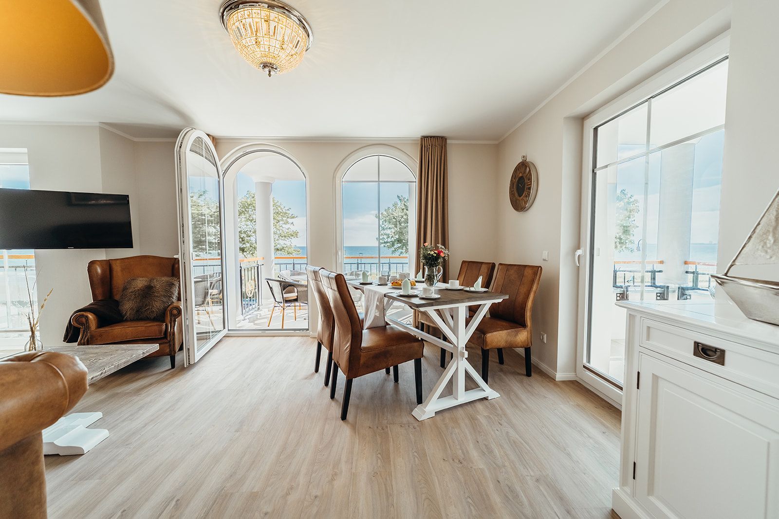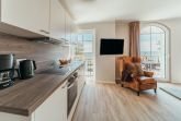 In dieser ca. 55m² großen Unterkunft befinden wir uns im 1. Staffelgeschoß des Hauses. Schon morgens beim Aufstehen genießt man auf dem vorderen Balkon, mit direktem Meerblick, den Sonnenaufgang. Am späten Nachmittag lädt der seitliche Balkon mit untergehender Sonne zu einem Prosecco ein. Zwei Schlafzimmer, ein gemütlicher Wohn-Essbereich mit Küchenzeile, ein Duschbad/WC und ein Gäste-WC bieten Raum für bis zu 4 Personen. Mit einem Aufzug gelangt man in das Ferienapartment. Das Auto parkt man sicher hinter dem Haus. Wir freuen uns, tolle Gäste begrüßen zu dürfen!